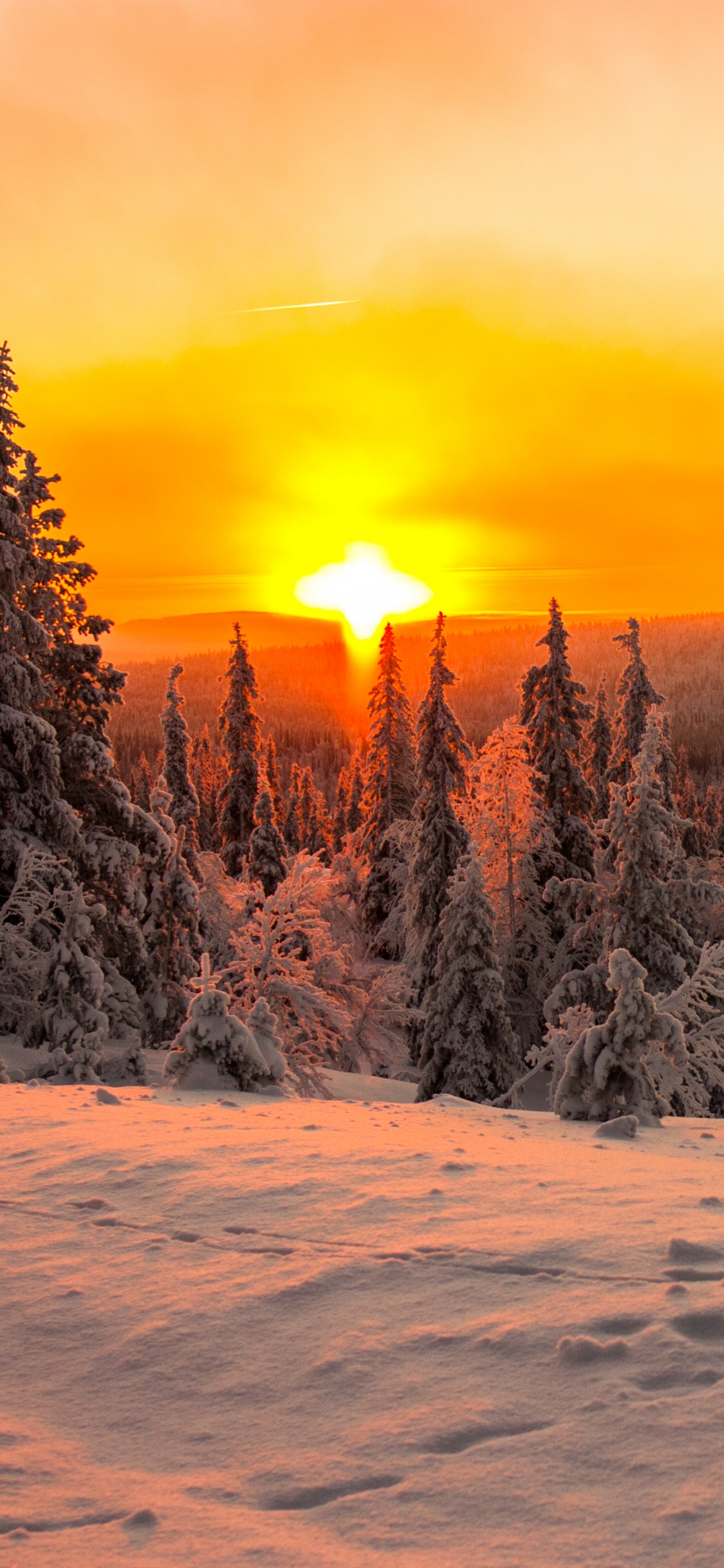 Обои закат, снег, природа, зима, дерево для iPhone X / XS, заставка, 1125x2436 картинка