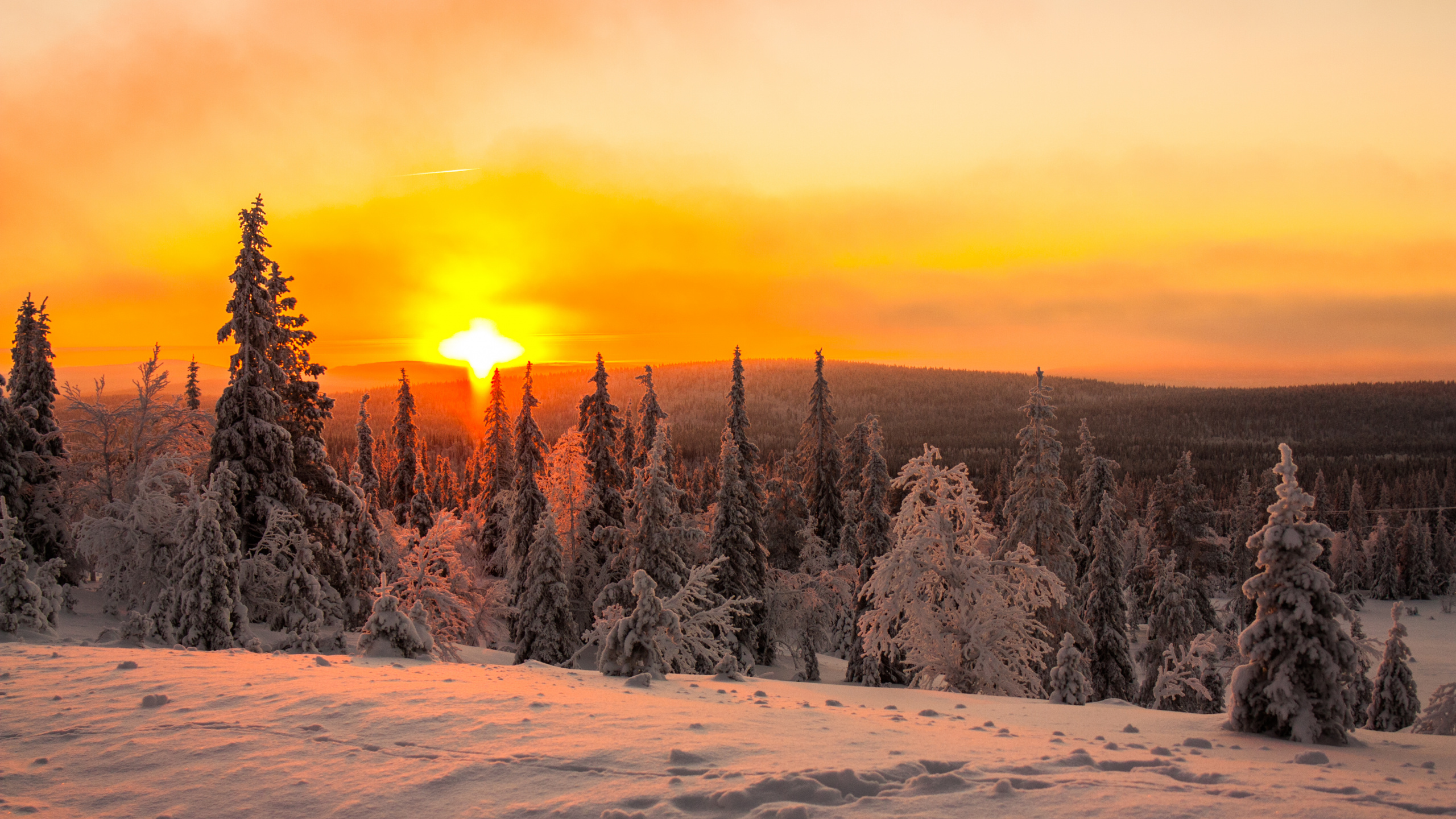 Обои 2560x1440 закат, снег, природа, зима, дерево, WQHD, QHD, 16:9 картинка