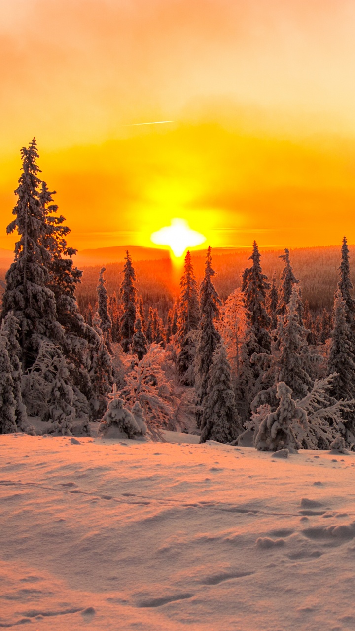 Обои закат, снег, природа, зима, дерево для HD Samsung Galaxy S3/J3/J4/J5, Meizu M5, Sony Xperia L1/L2, заставка, 720x1280 картинка