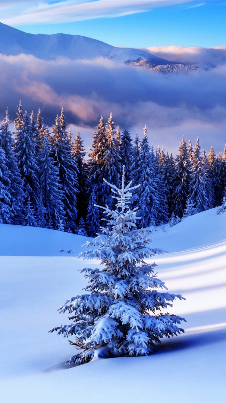 Обои зима, снег, природа, дерево, замораживание для iPhone 6, 6S, 7, 8, заставка, 750x1334 картинка