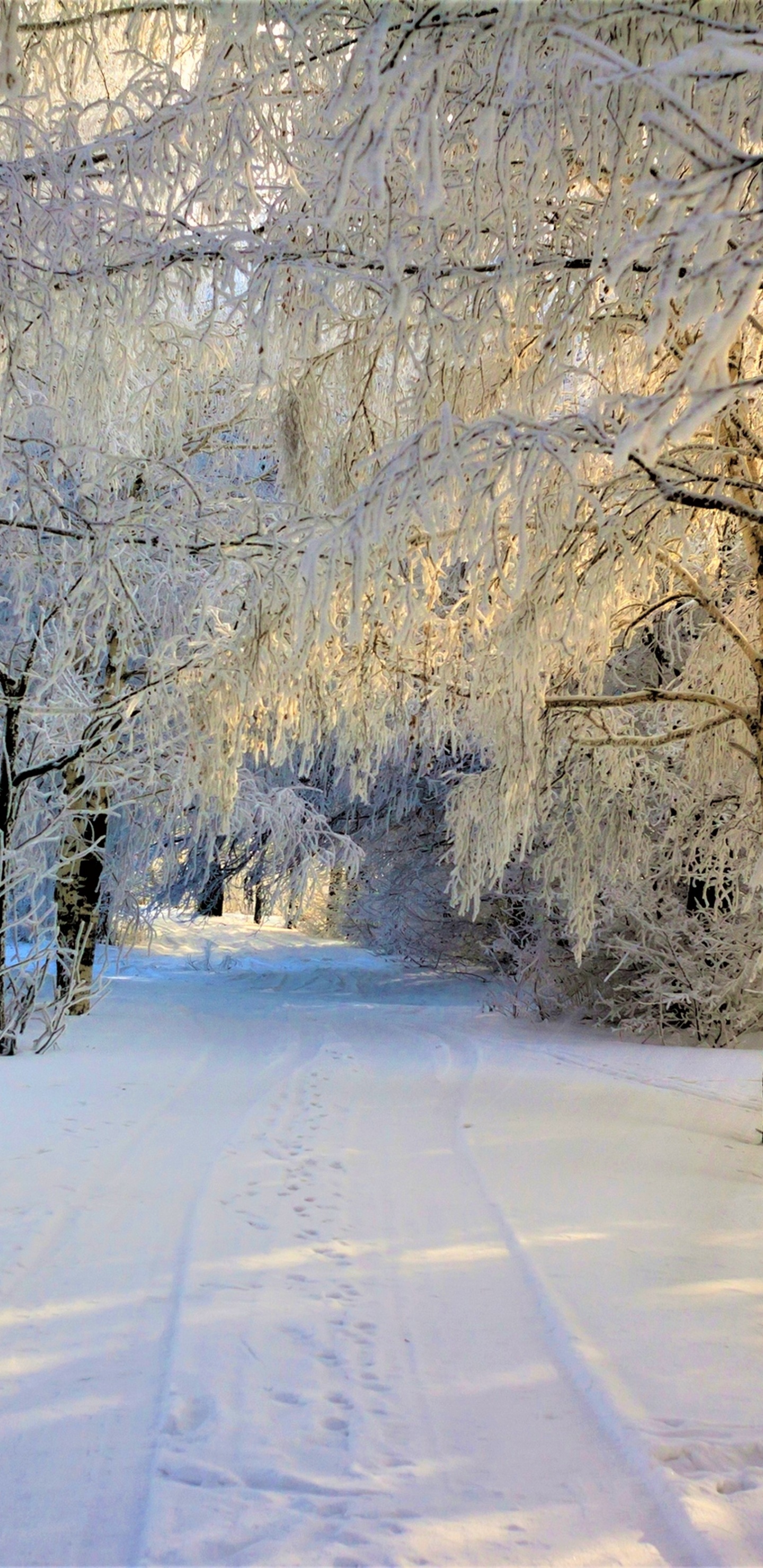 Обои зима, снег, дорога, дерево, природа для Samsung Galaxy S8/S8+/S9/S9+/Note 8/Note 9 QHD, заставка, 1440x2960 картинка