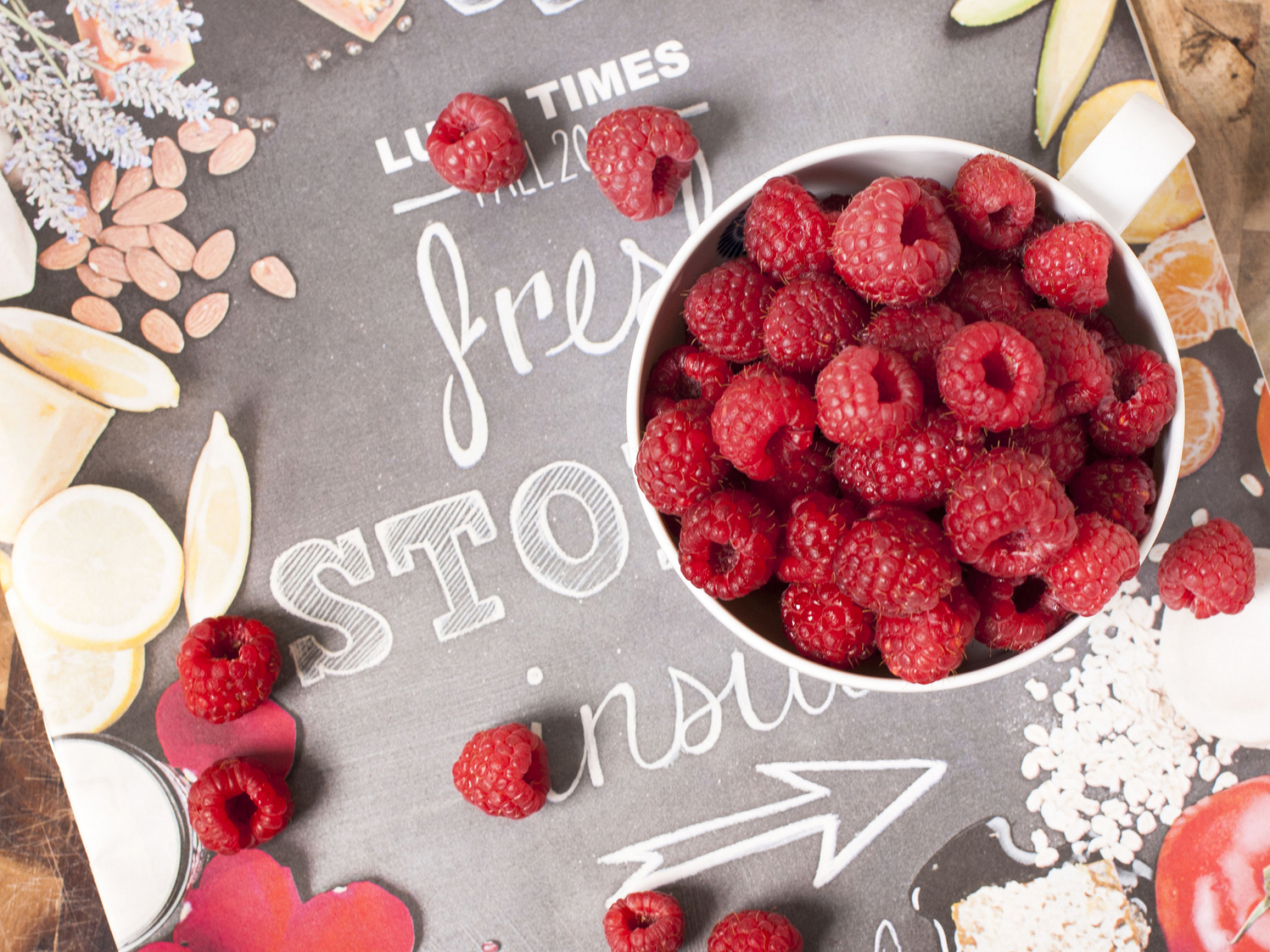Обои сладость, ягоды, фрукты, Красная малина, пища, фото, заставка