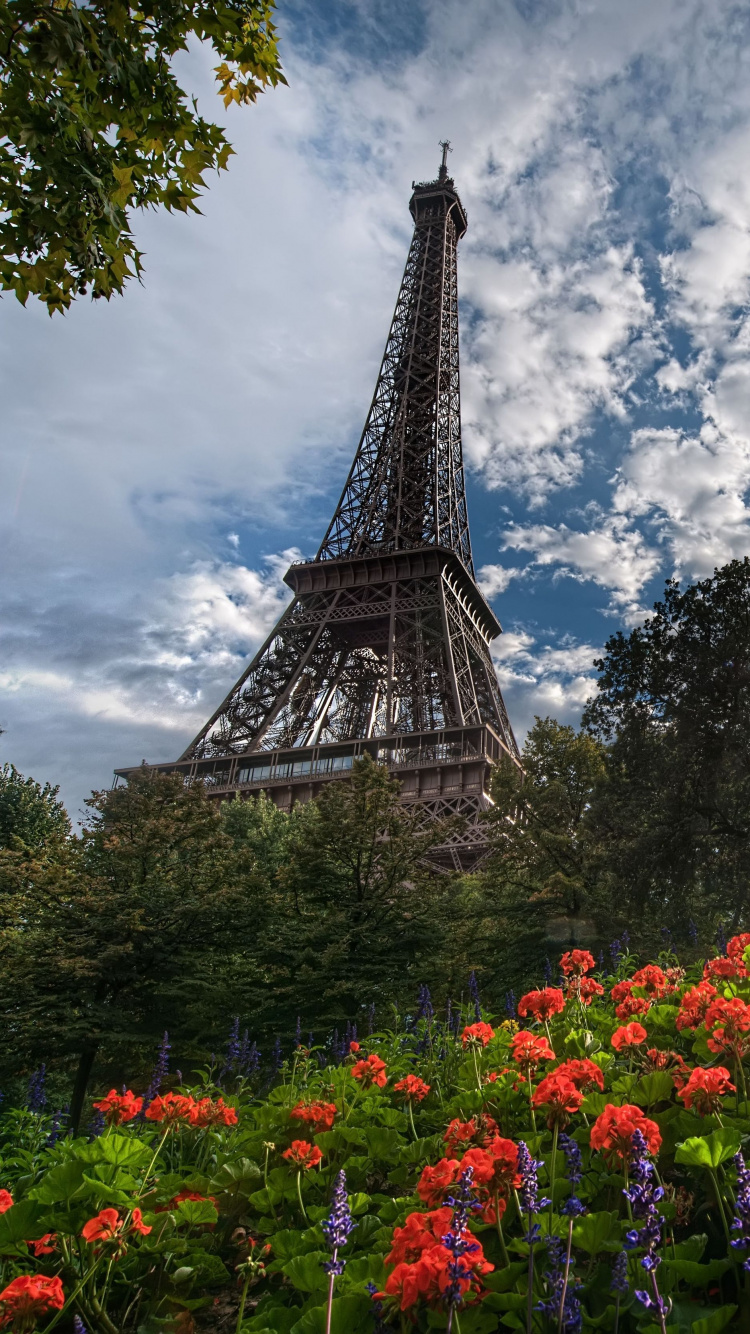Обои Эйфелева башня, природа, облако, ориентир, дерево для iPhone 6, 6S, 7, 8, заставка, 750x1334 картинка