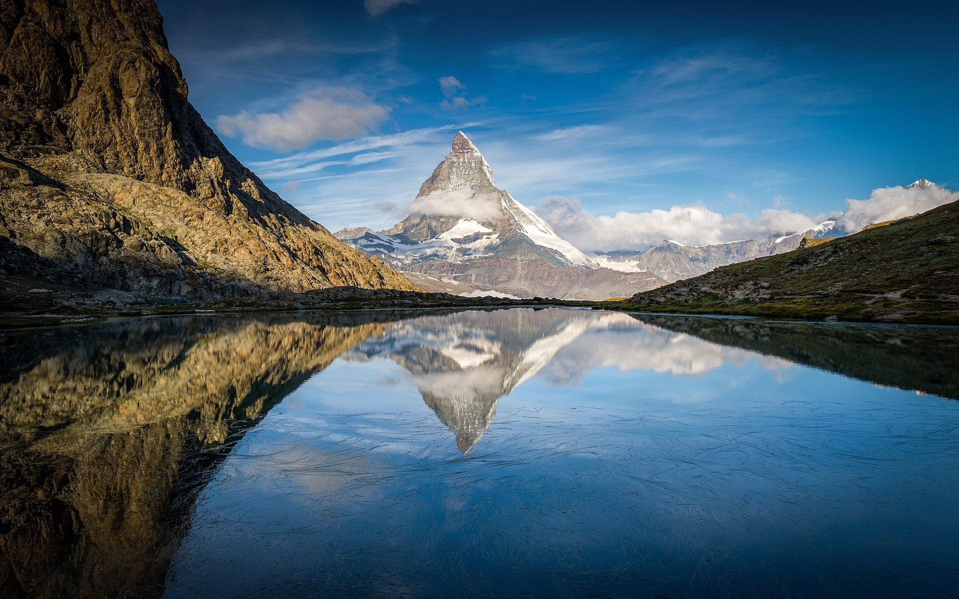 Обои маттерхорн, отражение, природа, вода, горный рельеф, фото, заставка