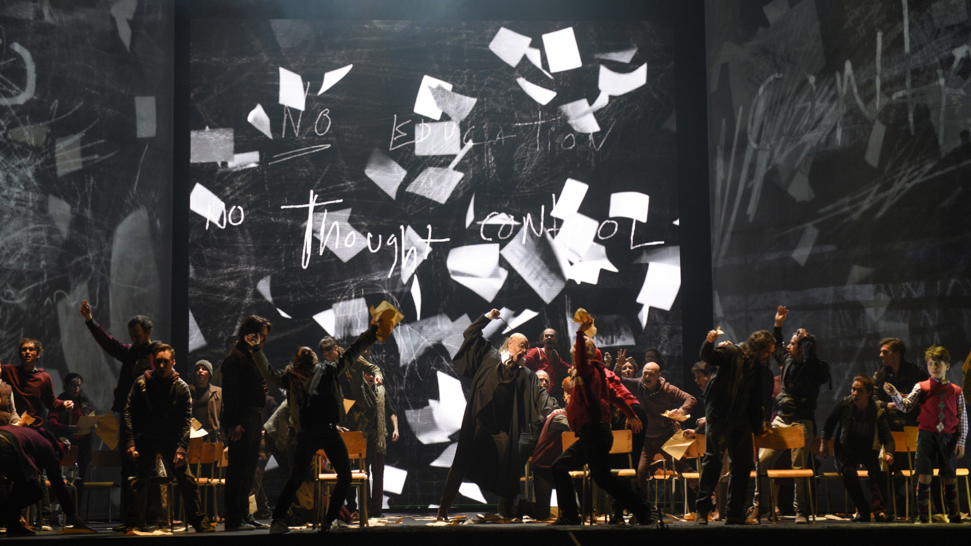 Обои 1920x1080 Pink Floyd, Берлинская стена, Еще один кирпич в стене Часть 2, Еще один кирпич в стене оперы, Опера Цинциннати, Full HD, HDTV, 1080p 16:9 картинка