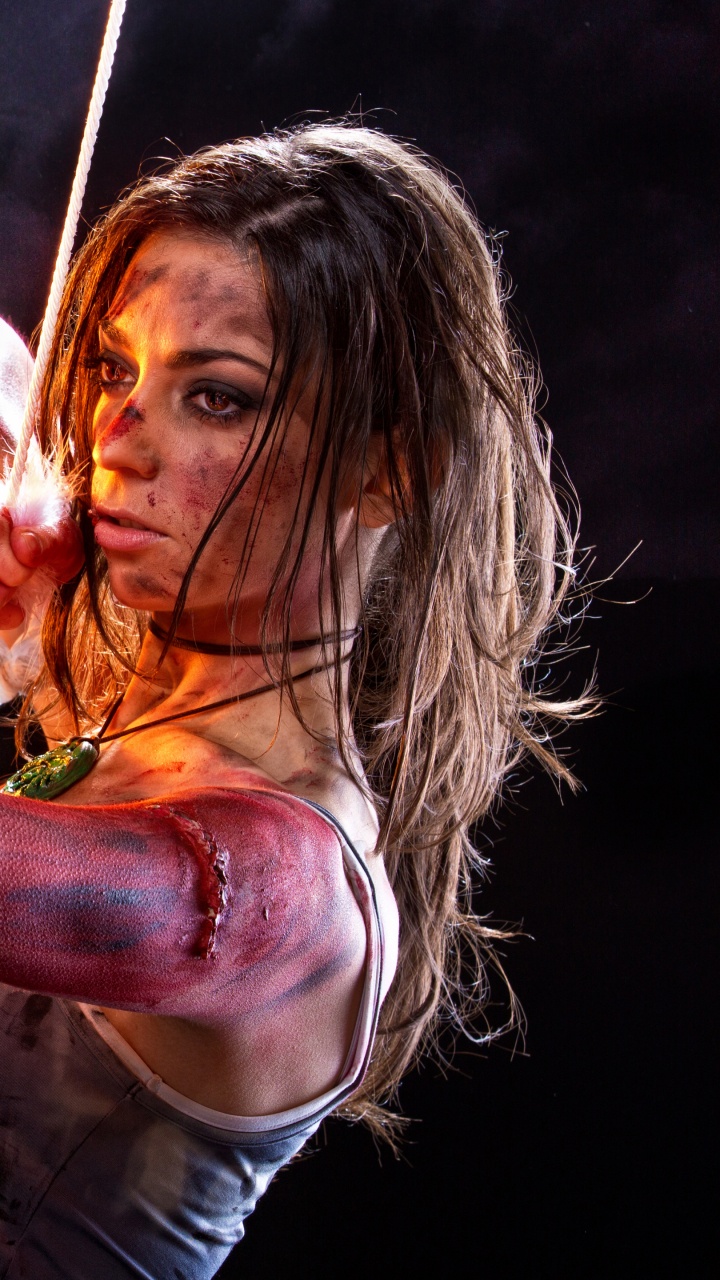 Обои лары крофт, рейдовик, фэнтези, театральное искусство, стрельба из лука для HD Samsung Galaxy S3/J3/J4/J5, Meizu M5, Sony Xperia L1/L2, заставка, 720x1280 картинка