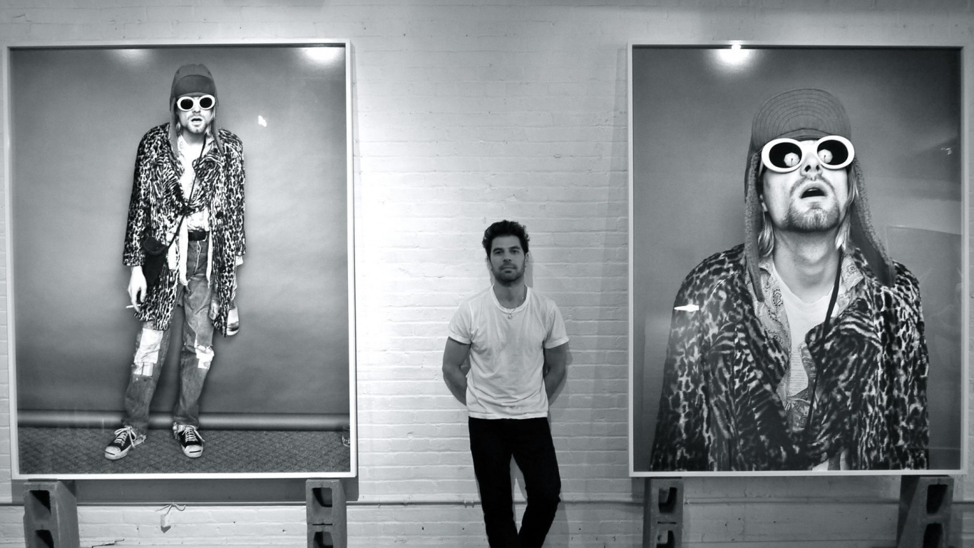 Обои 1366x768 нирвана, белые, черный, стояние, артист, HD ready картинка
