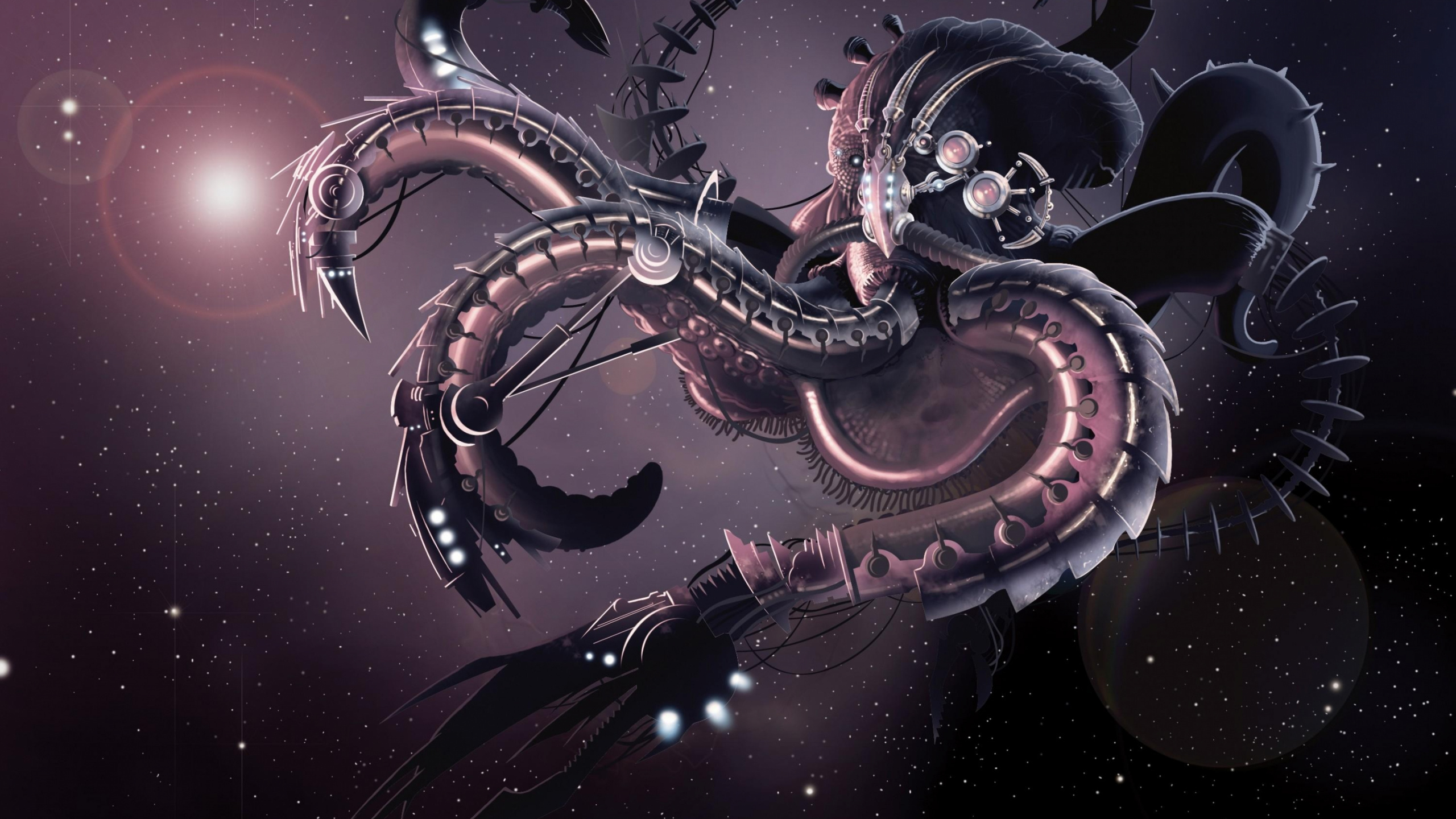 Обои 2560x1440 робот, иллюстрация, космос, фрактальное искусство, щупальце, WQHD, QHD, 16:9 картинка