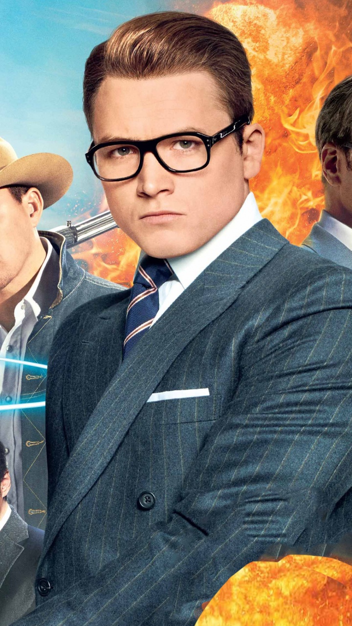 Обои Кингсман Золотой Круг, Мэттью Вон, Тарон Эгертон, Гэри Эггзи Анвин, Кингсман Секретная Служба для HD Samsung Galaxy S3/J3/J4/J5, Meizu M5, Sony Xperia L1/L2, заставка, 720x1280 картинка