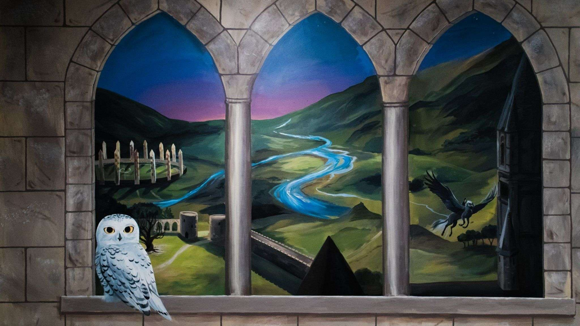 Обои 1920x1080 живопись, Гарри Поттер, фреска, стена, Волшебный мир Гарри Поттера, Full HD, HDTV, 1080p 16:9 картинка