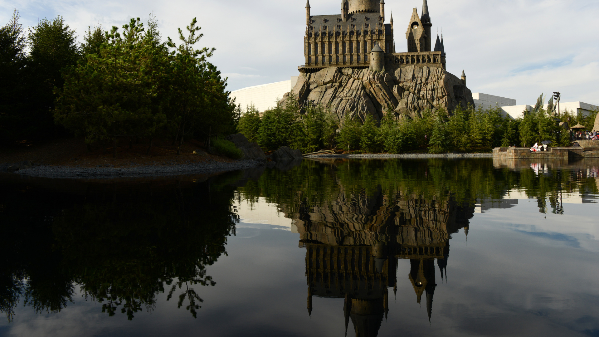 Обои 1920x1080 Универсальные Студии Японии, Волшебный мир Гарри Поттера, Гарри Поттер, парк развлечений, отражение, Full HD, HDTV, 1080p 16:9 картинка