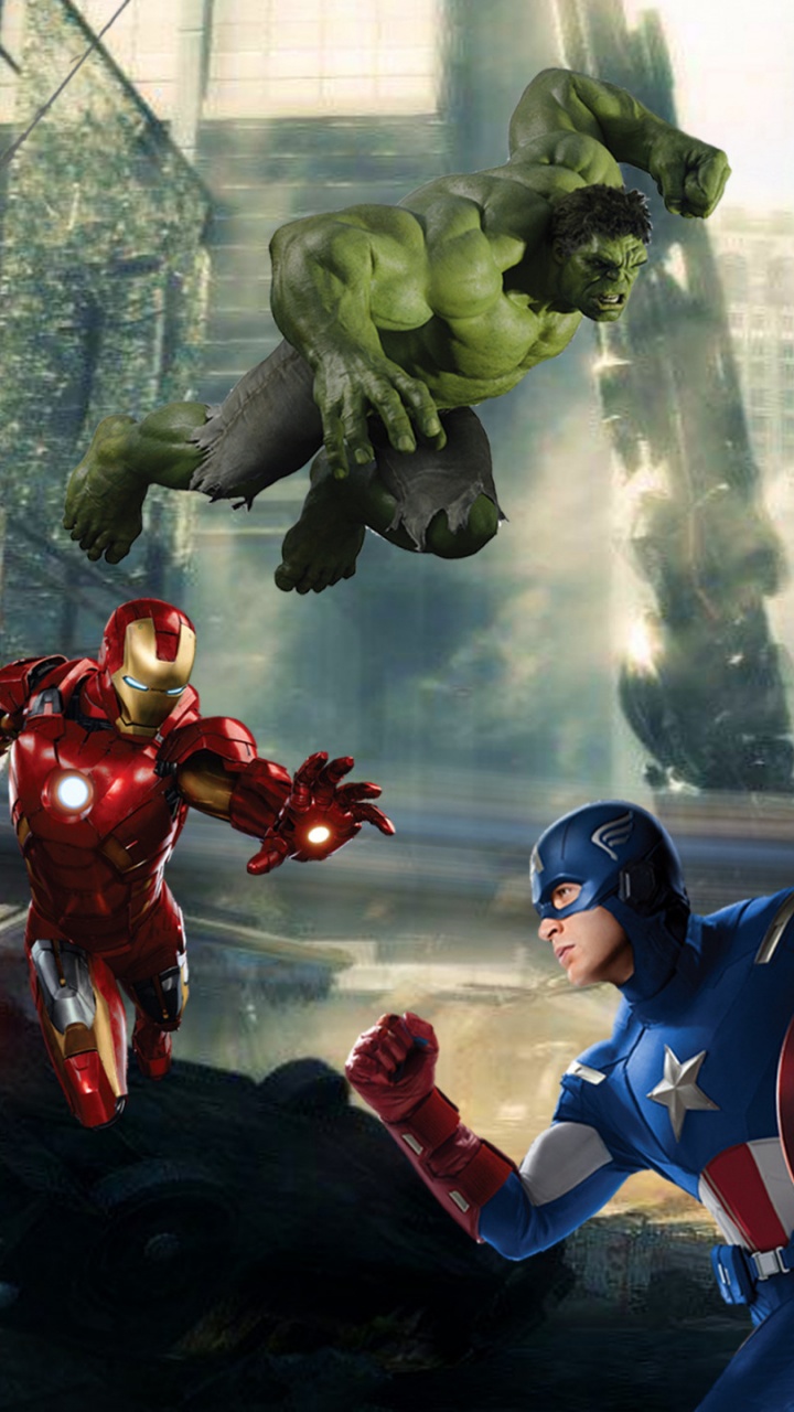 Обои Халк, Железный человек, Капитан Америка, супергерой, компьютерная игра для HD Samsung Galaxy S3/J3/J4/J5, Meizu M5, Sony Xperia L1/L2, заставка, 720x1280 картинка