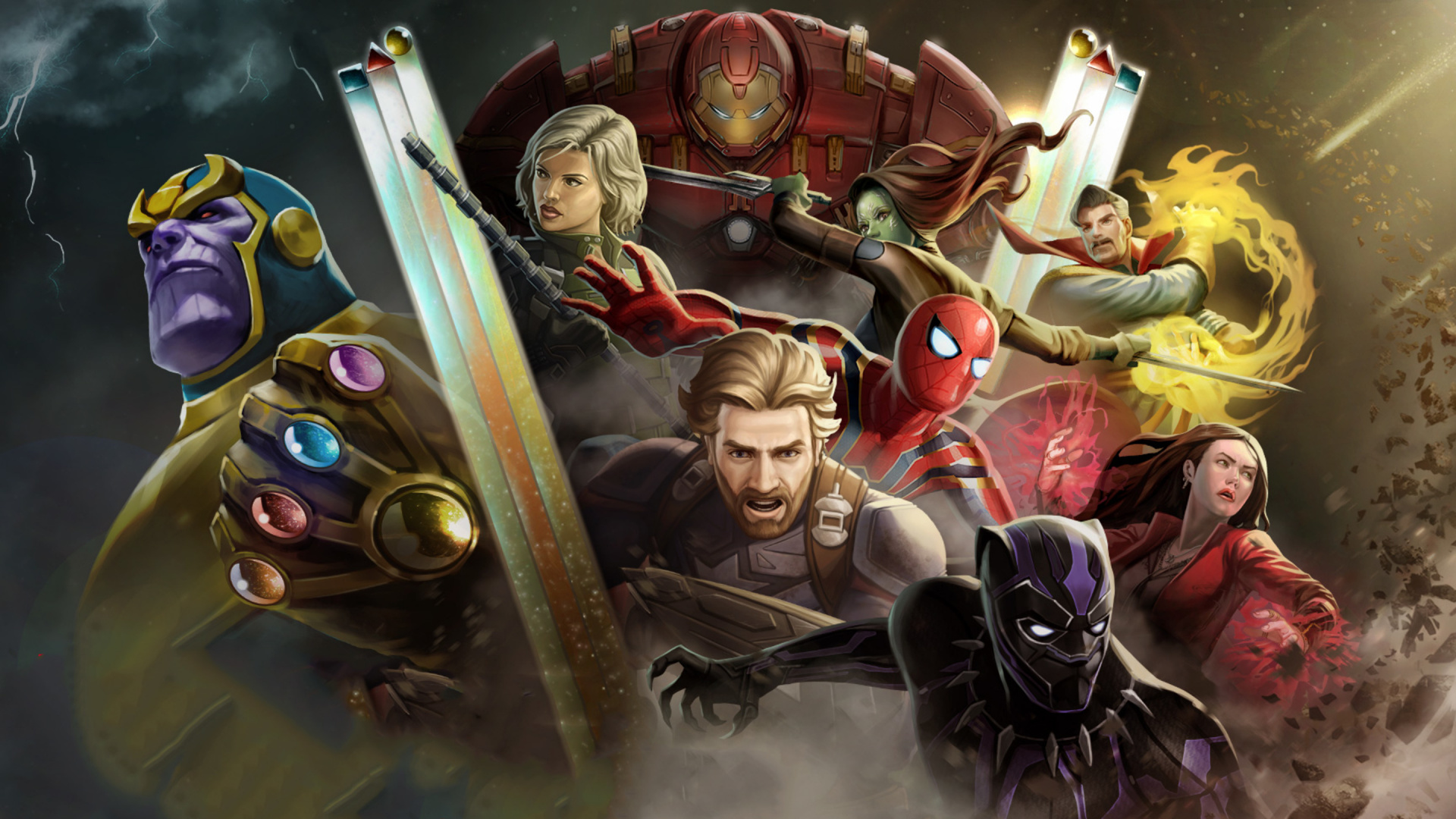 Обои 1920x1080 Marvel конкурс чемпионов, Мстители: Война бесконечности, Танос, человек-паук, мифология, Full HD, HDTV, 1080p 16:9 картинка