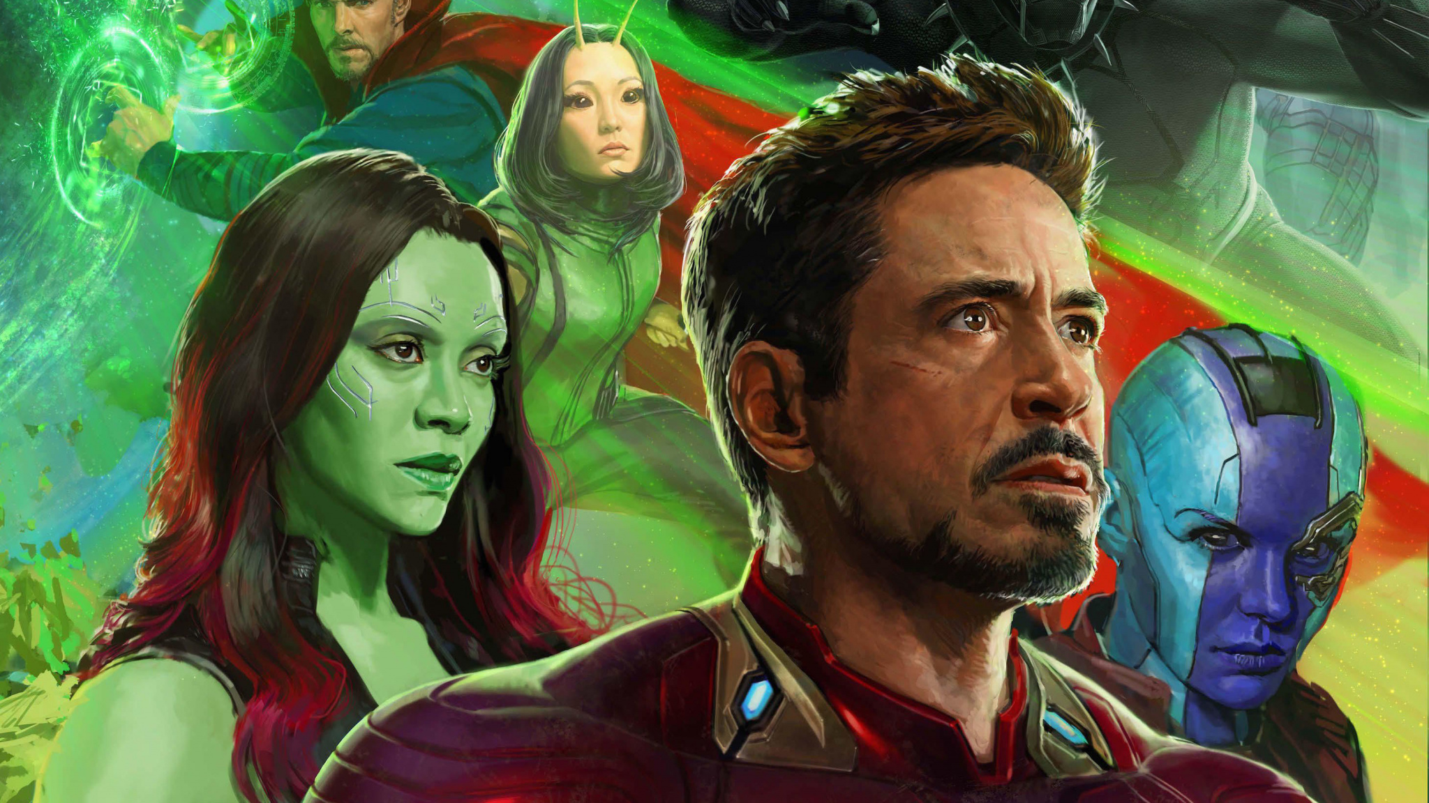 Обои Мстители: Война бесконечности, Железный человек, Танос, Гамора, мститель, фото, заставка