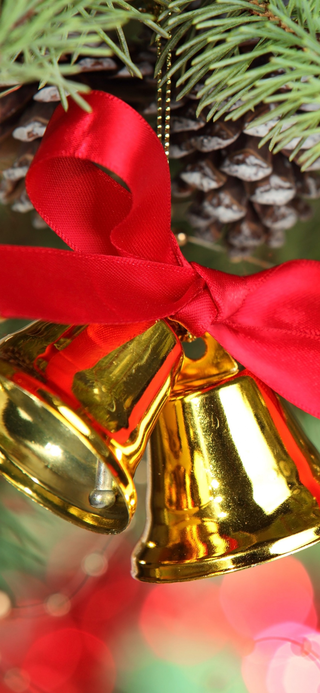 Обои Рождественские украшения, Рождественский день, колокольчик, елка, праздник для iPhone XS Max, заставка, 1242x2688 картинка