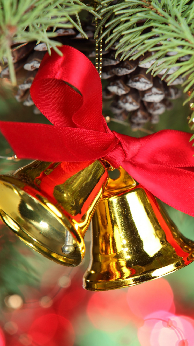Обои Рождественские украшения, Рождественский день, колокольчик, елка, праздник для iPhone 6, 6S, 7, 8, заставка, 750x1334 картинка