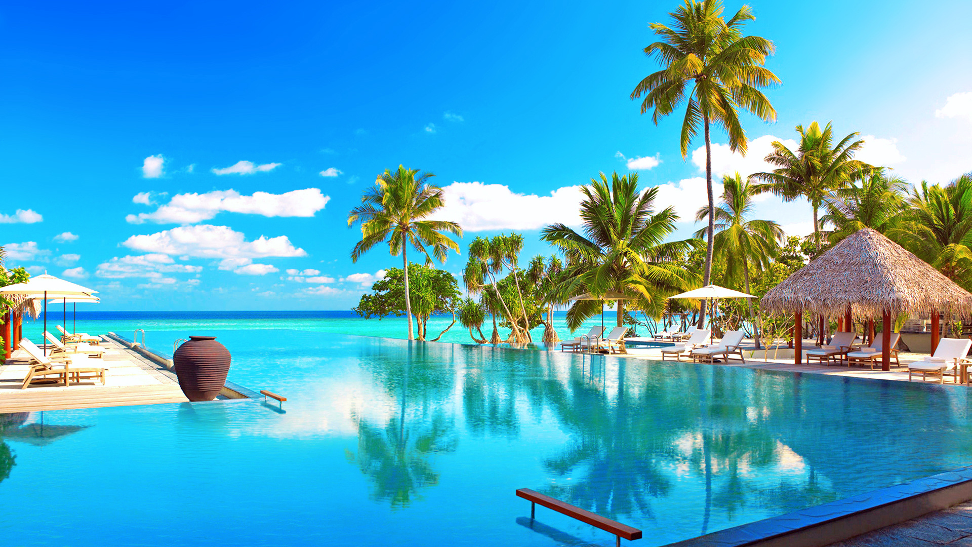 Обои 1920x1080 прибежище, плавательный бассейн, отпуск, Карибский бассейн, курортный город, Full HD, HDTV, 1080p 16:9 картинка