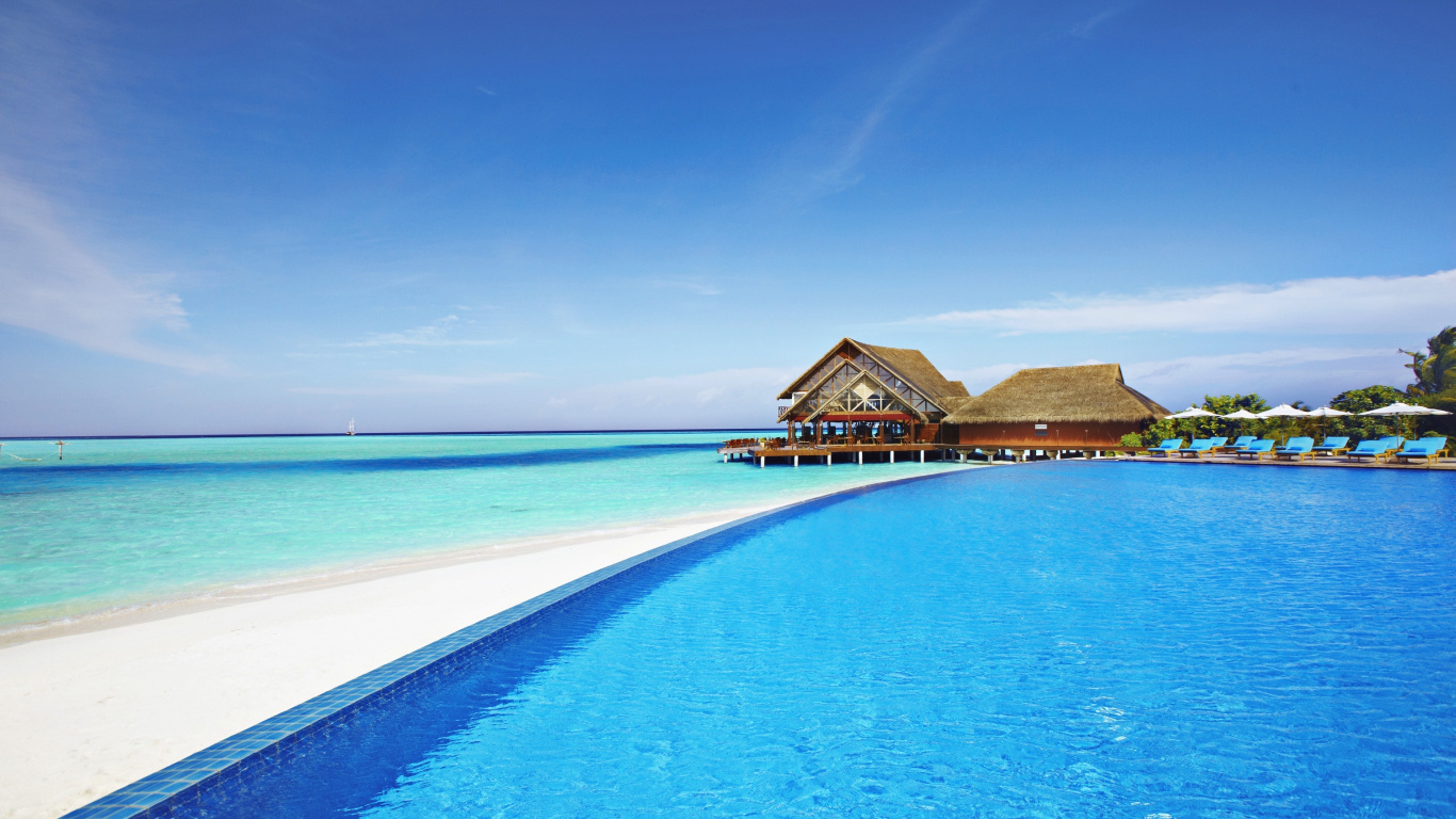 Обои 1366x768 пляж, прибежище, море, плавательный бассейн, отпуск, HD ready картинка