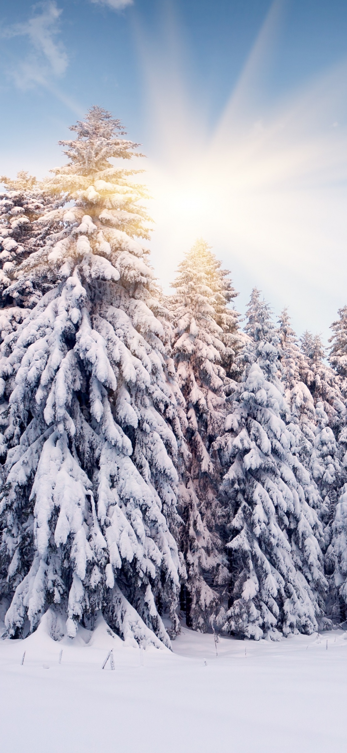 Обои снег, зима, дерево, замораживание, мороз для iPhone X / XS, заставка, 1125x2436 картинка