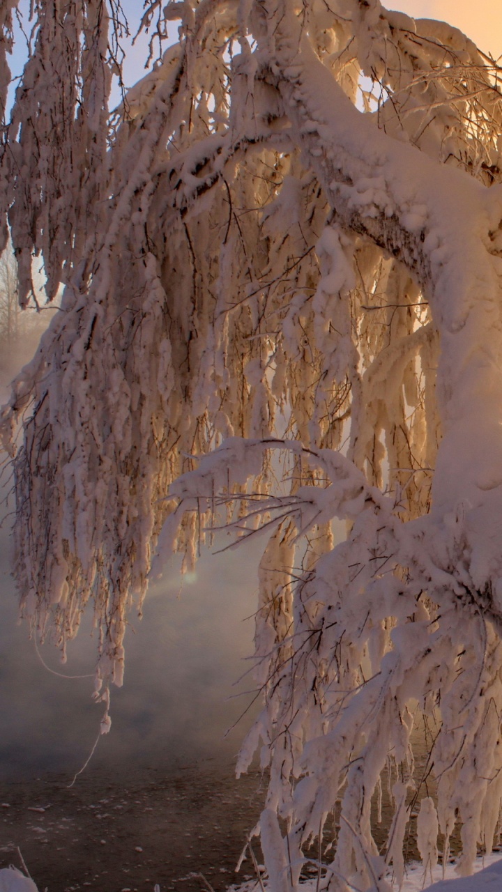 Обои зима, снег, сезон, замораживание, дерево для HD Samsung Galaxy S3/J3/J4/J5, Meizu M5, Sony Xperia L1/L2, заставка, 720x1280 картинка
