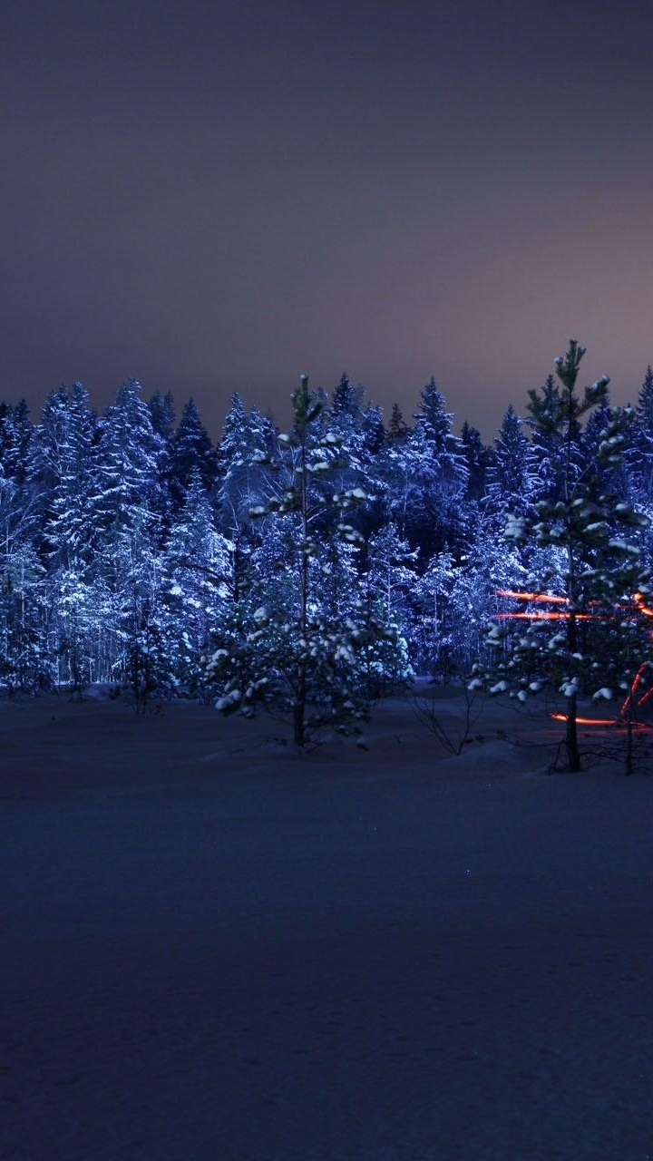 Обои зима, ночь, снег, синий, природа для HD Samsung Galaxy S3/J3/J4/J5, Meizu M5, Sony Xperia L1/L2, заставка, 720x1280 картинка