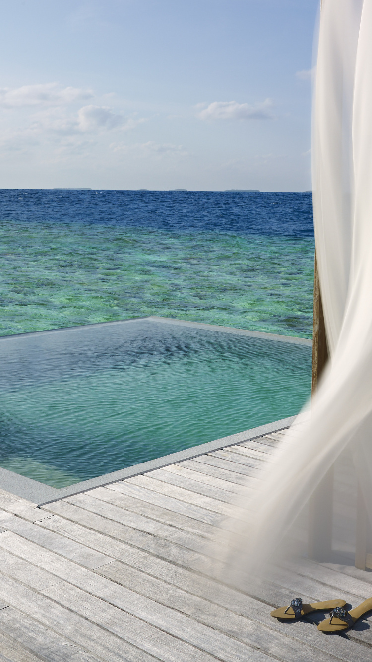 Обои плавательный бассейн, прибежище, пляж, Дусит Тани Мальдивы, океан для iPhone 6, 6S, 7, 8, заставка, 750x1334 картинка