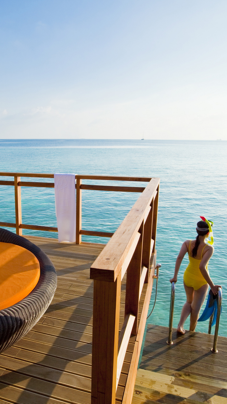Обои Велассару Мальдивы, вилла, прибежище, пляж, море для iPhone 6, 6S, 7, 8, заставка, 750x1334 картинка
