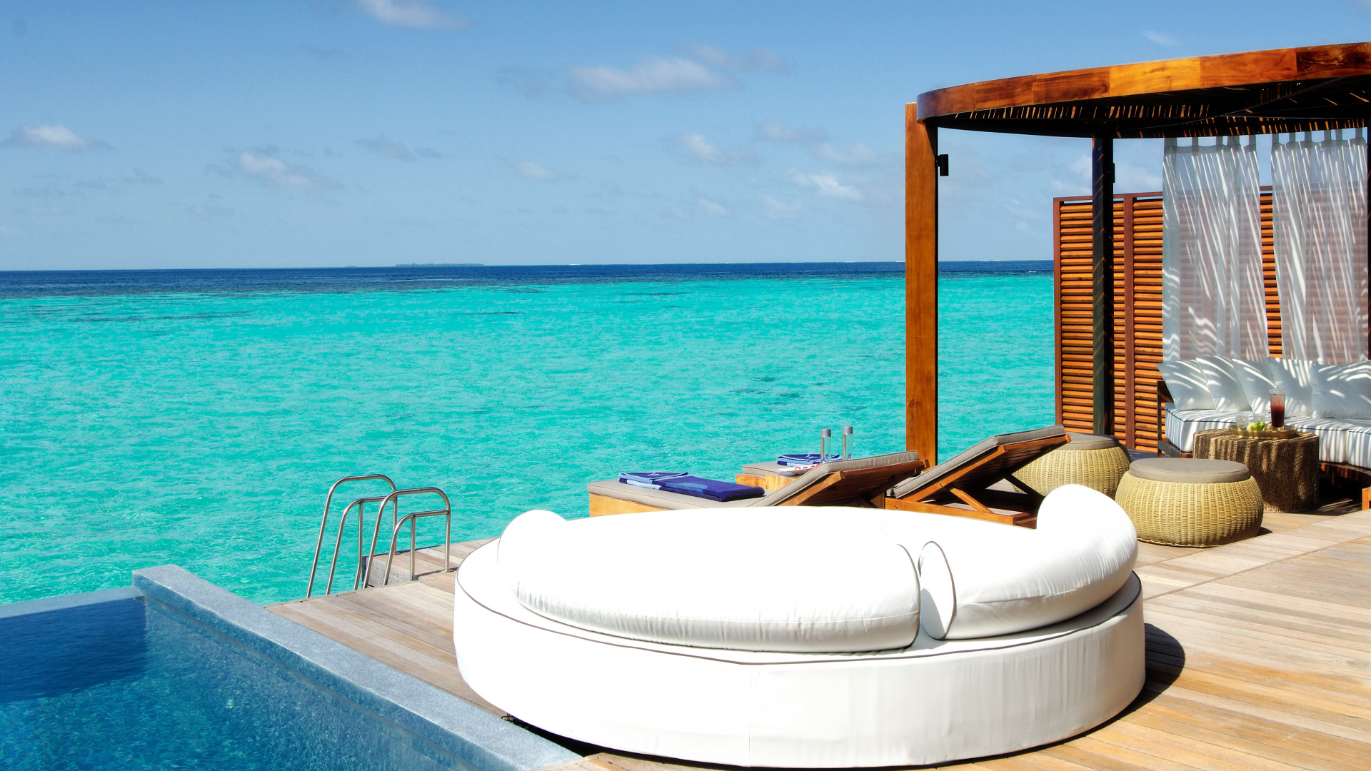 Обои 1920x1080 Вт отступление спа Мальдивы, Мальдивы Вт, прибежище, пляж, спа, Full HD, HDTV, 1080p 16:9 картинка