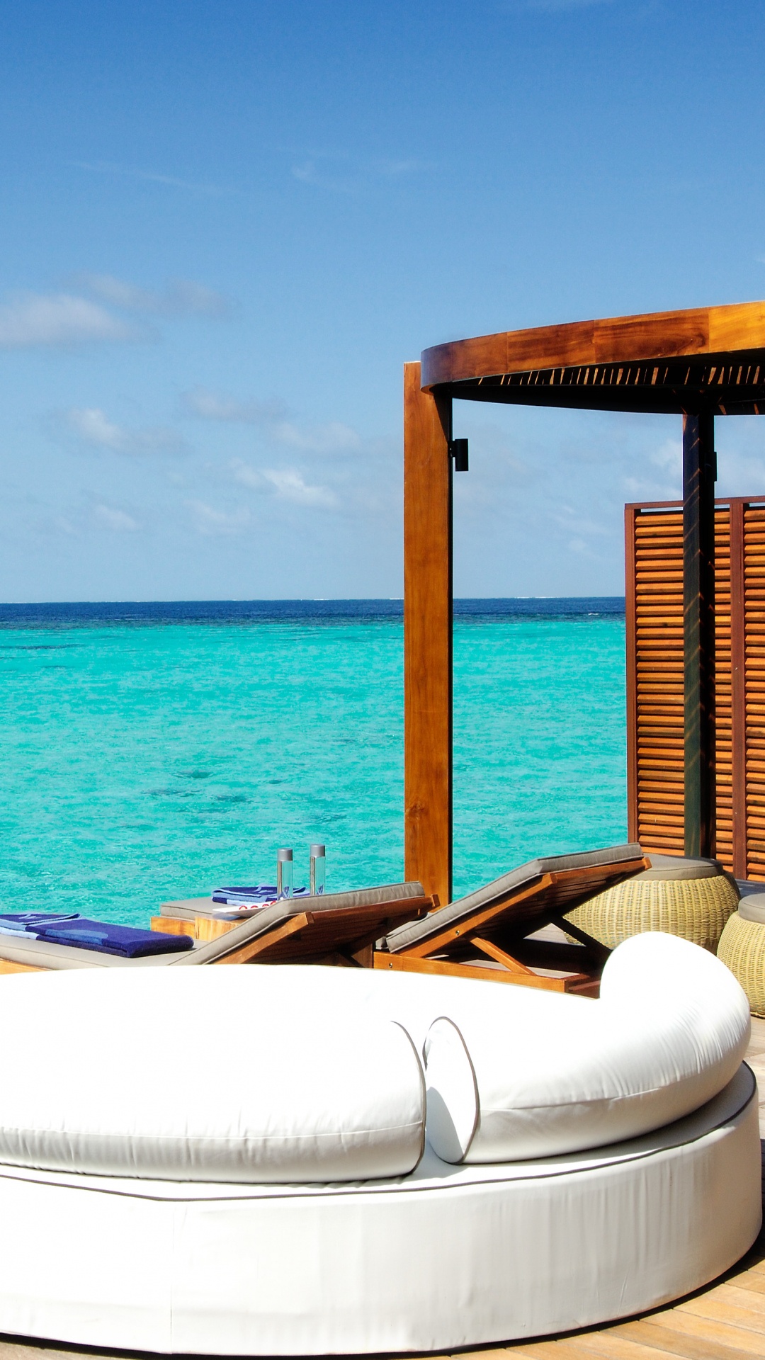 Обои Вт отступление спа Мальдивы, Мальдивы Вт, прибежище, пляж, спа для iPhone 6S+/7+/8+, заставка, 1080x1920 картинка