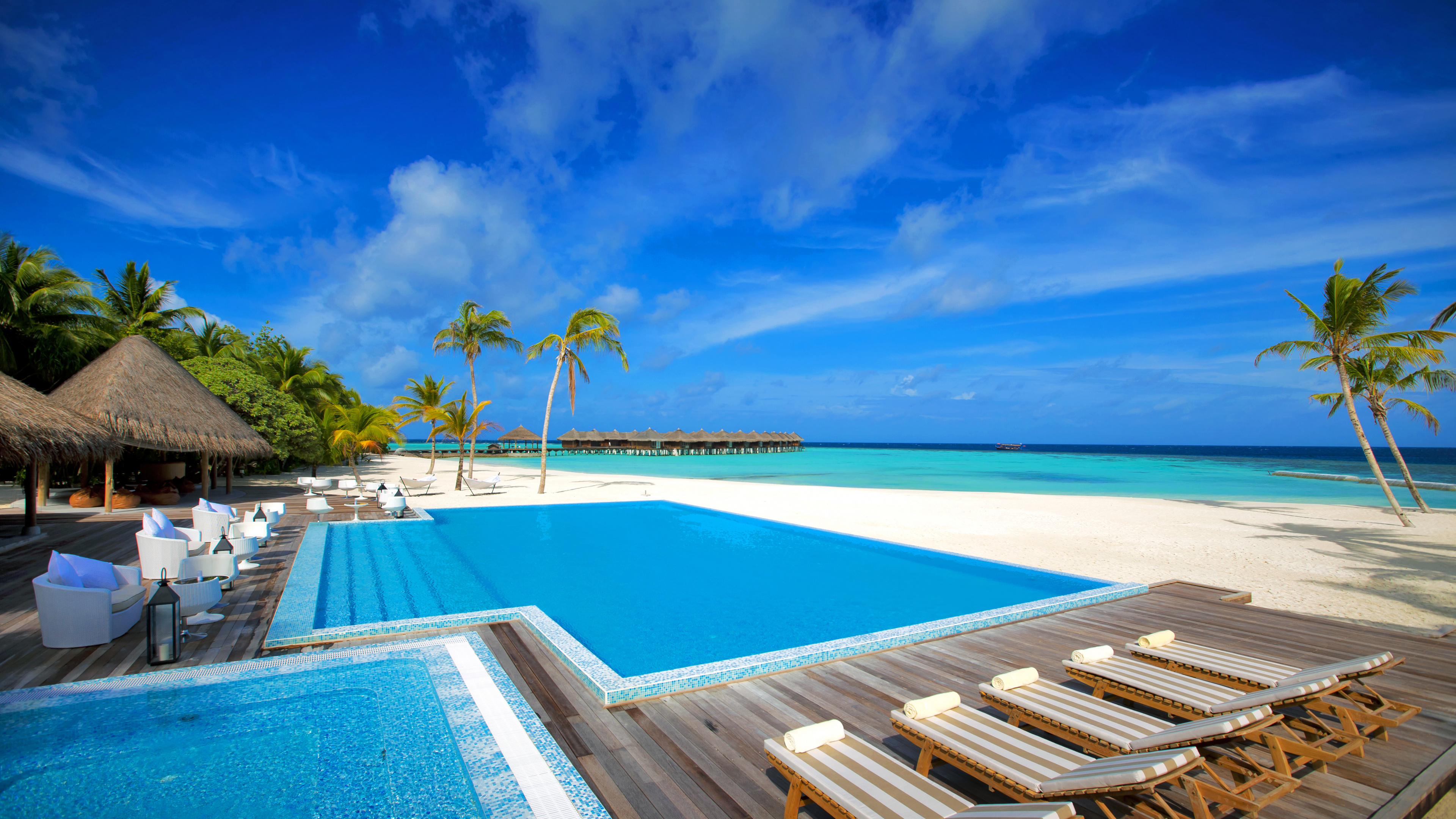 Обои 3840x2160 Дангети, Ари Атолл, О Маафуши Мальдивы, прибежище, плавательный бассейн, 4K Ultra HD картинка