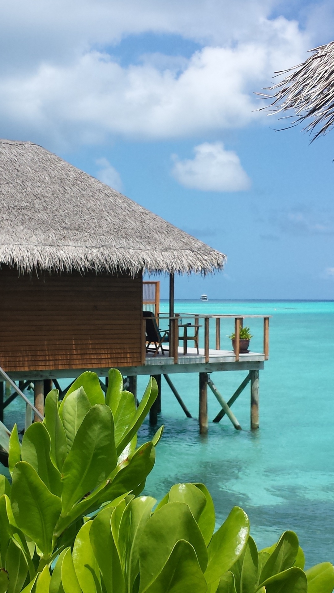Обои Мальдивы, хижина, коттедж, пляж, отпуск для iPhone 6S+/7+/8+, заставка, 1080x1920 картинка