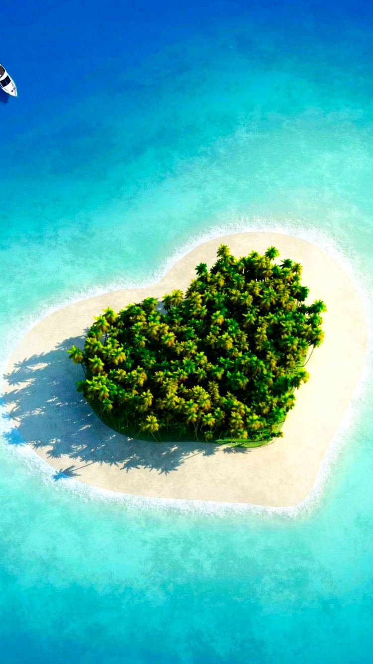 Обои Остров, пляж, лазурный, небо, остров в форме сердца для iPhone 6, 6S, 7, 8, заставка, 750x1334 картинка