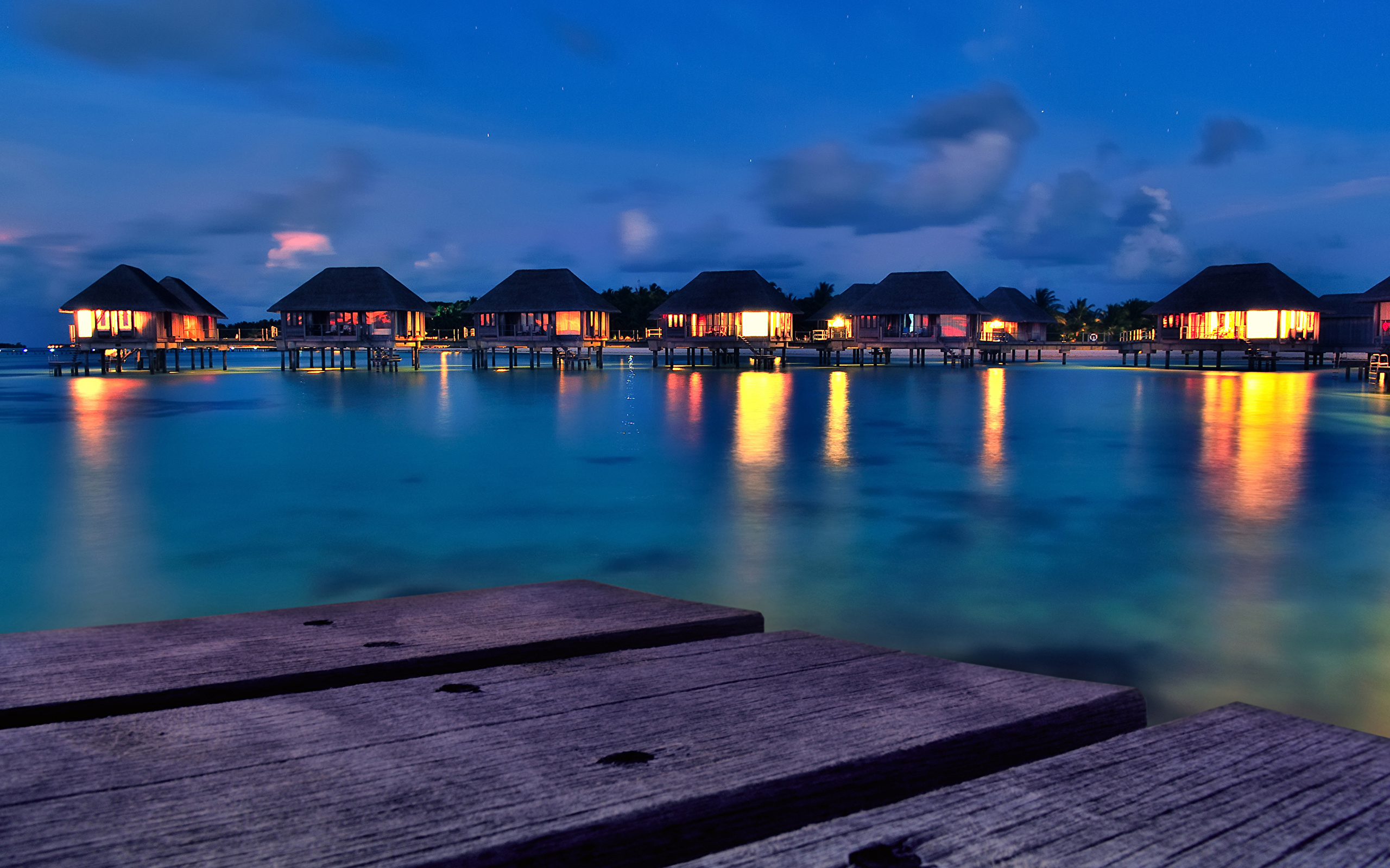 Обои Мальдивы, вода, вечер, сумрак, море, фото, заставка