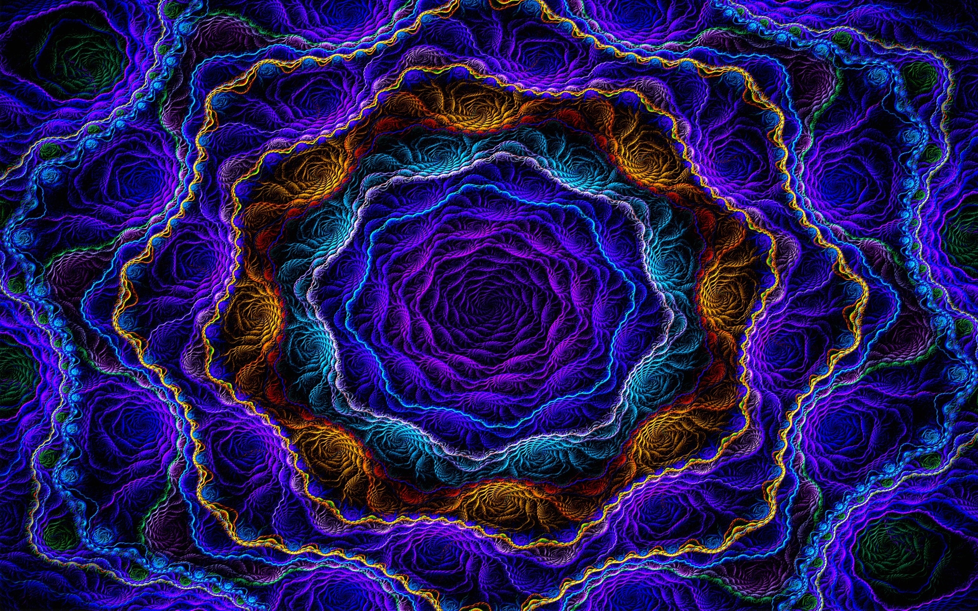 Обои узор, фрактальное искусство, неон, синий, пурпур, фото, заставка