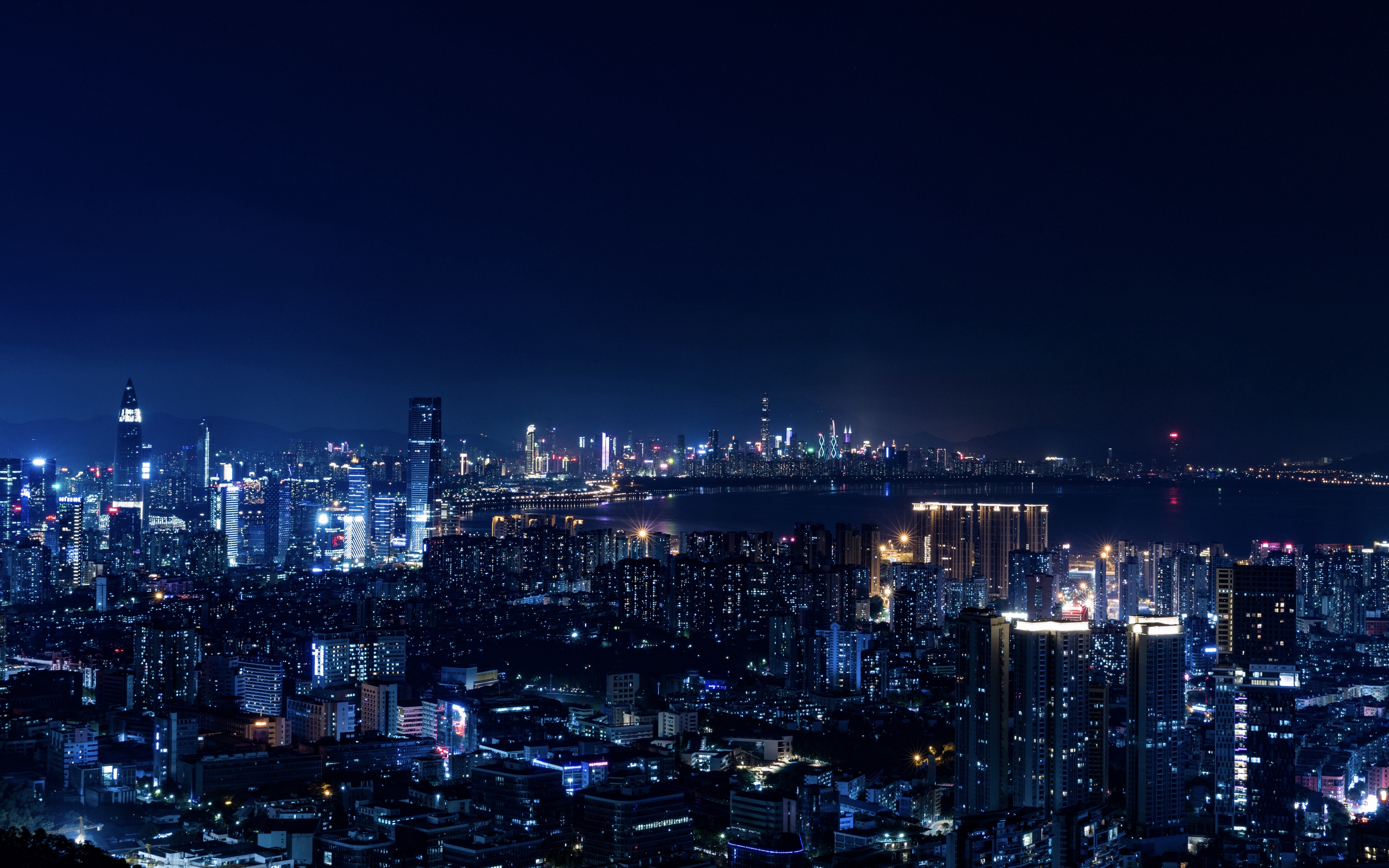 Обои город, ночь, городской пейзаж, городской район, метрополия, фото, заставка