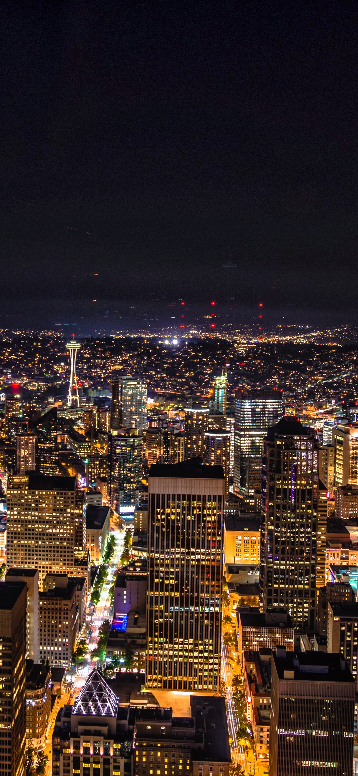Обои город, небоскреб, Сиэтл, городской пейзаж, ночь для iPhone XS Max, заставка, 1242x2688 картинка