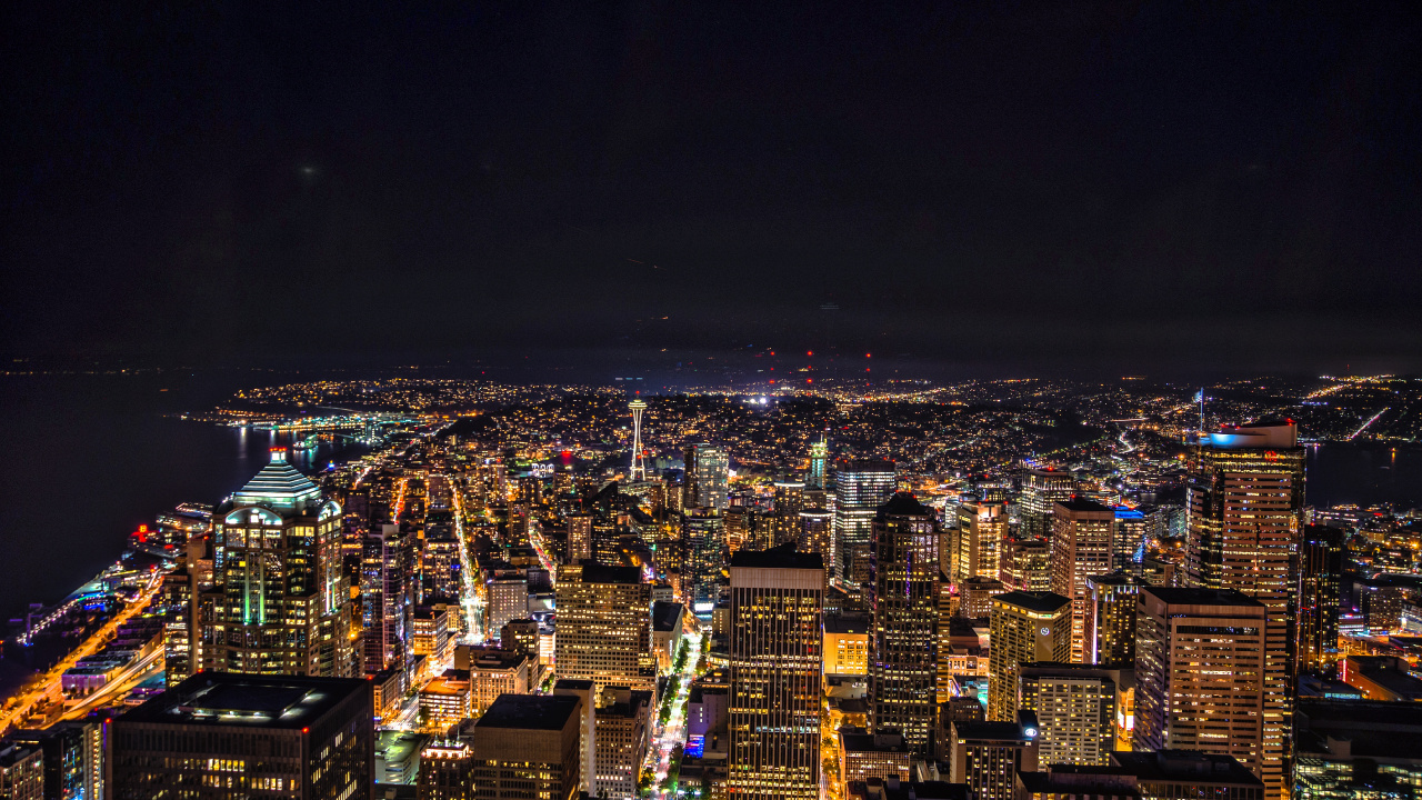 Обои 1280x720 город, небоскреб, Сиэтл, городской пейзаж, ночь, HD, HDV, 720p, 16:9 картинка