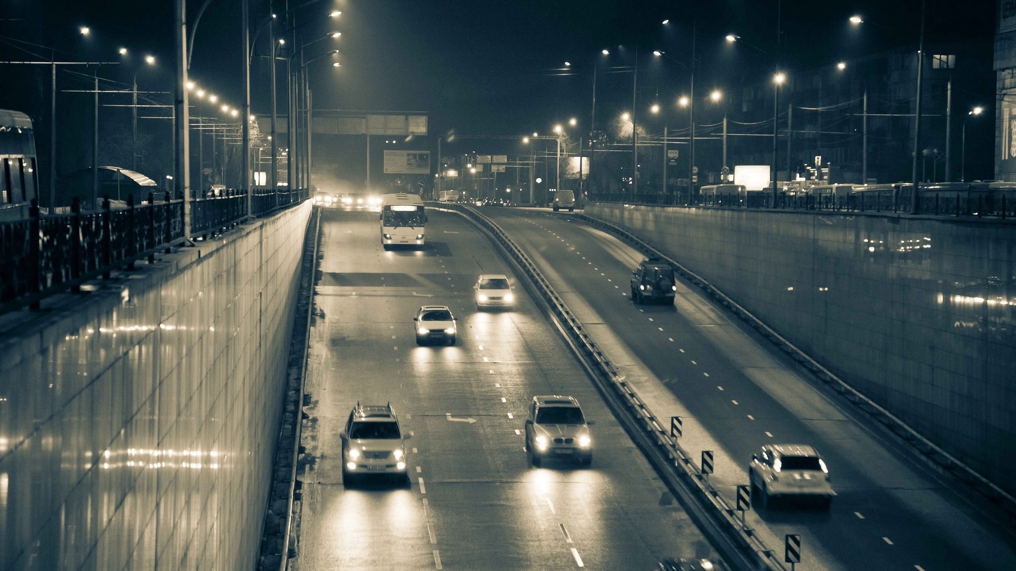 Обои дорога, переулок, магистраль, городской район, ночь, фото, заставка