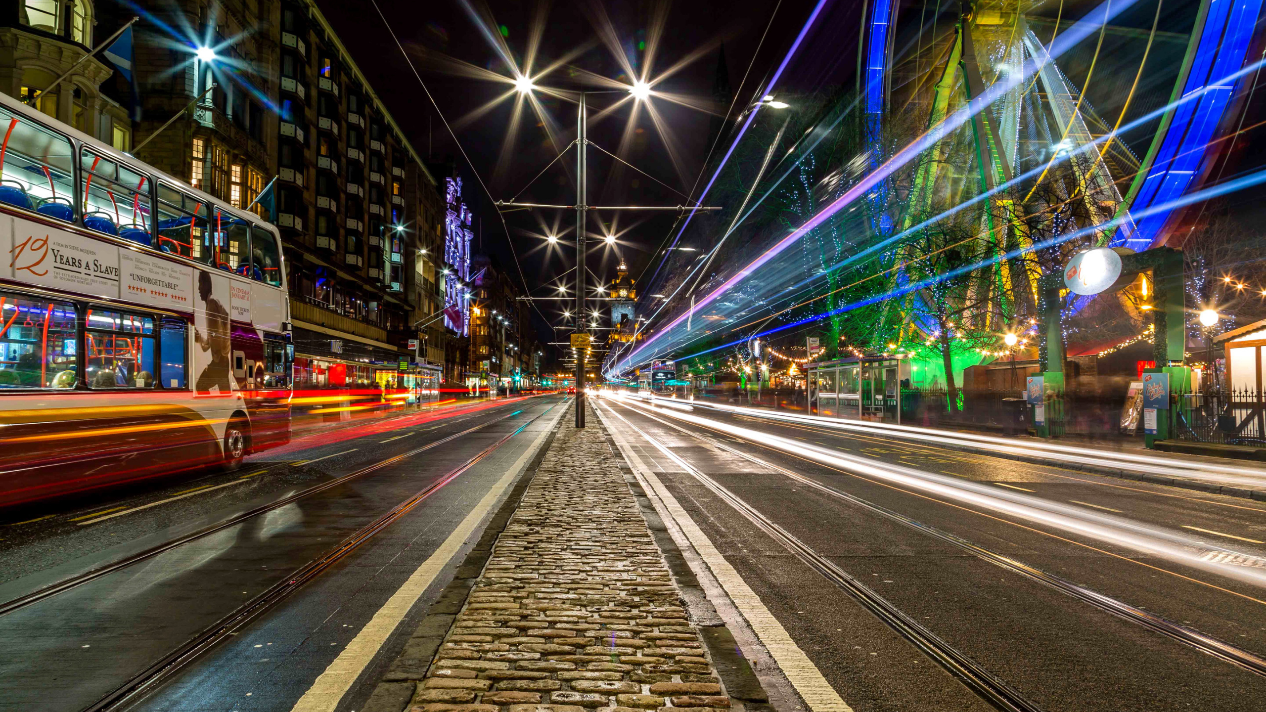 Обои 2560x1440 город, дорога, ночь, городской район, свет, WQHD, QHD, 16:9 картинка
