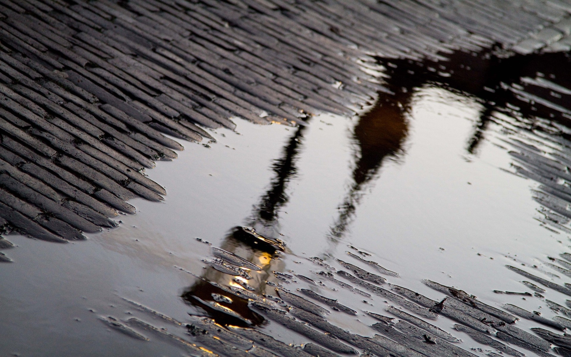 Обои дождь, тротуар, вода, отражение, гидроресурсы, фото, заставка
