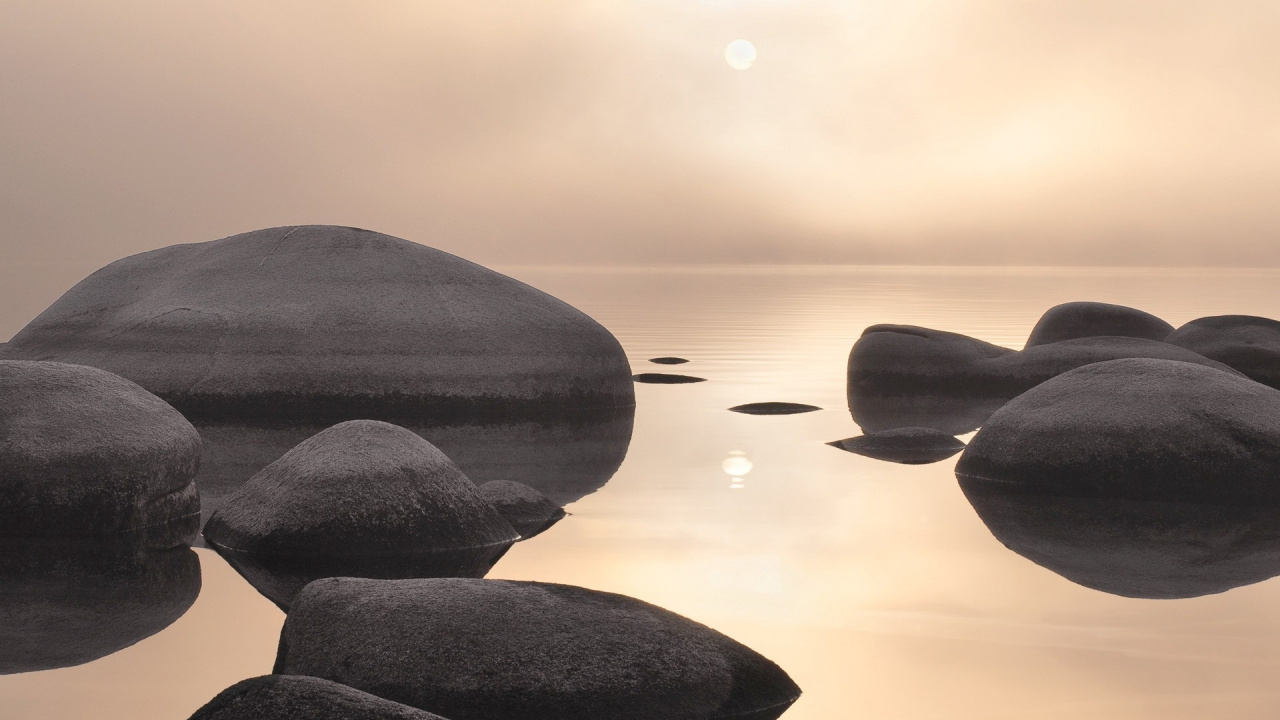 Обои 1280x720 Операционная система, рок, отражение, вода, море, HD, HDV, 720p, 16:9 картинка
