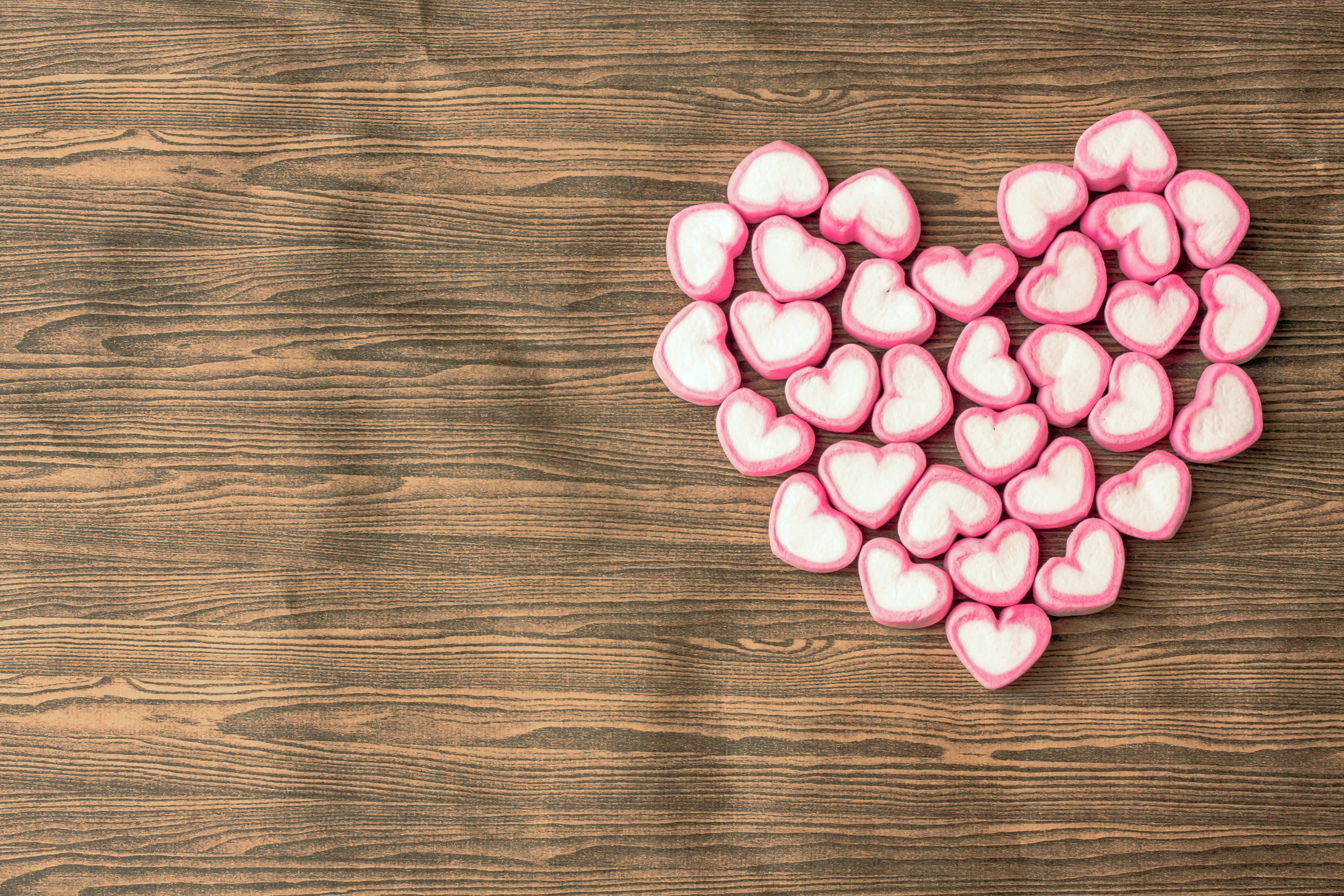 Обои розовый, сердце, любовь, лепесток, щенячья любовь, фото, заставка