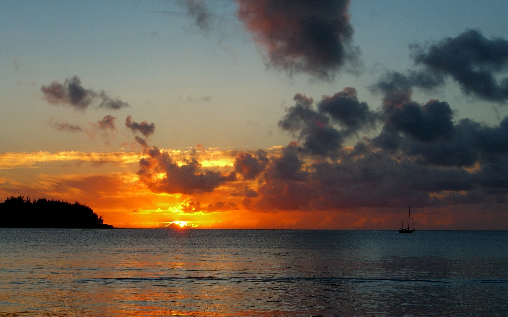 Обои Гавайи, горизонт, закат, облако, море, фото, заставка