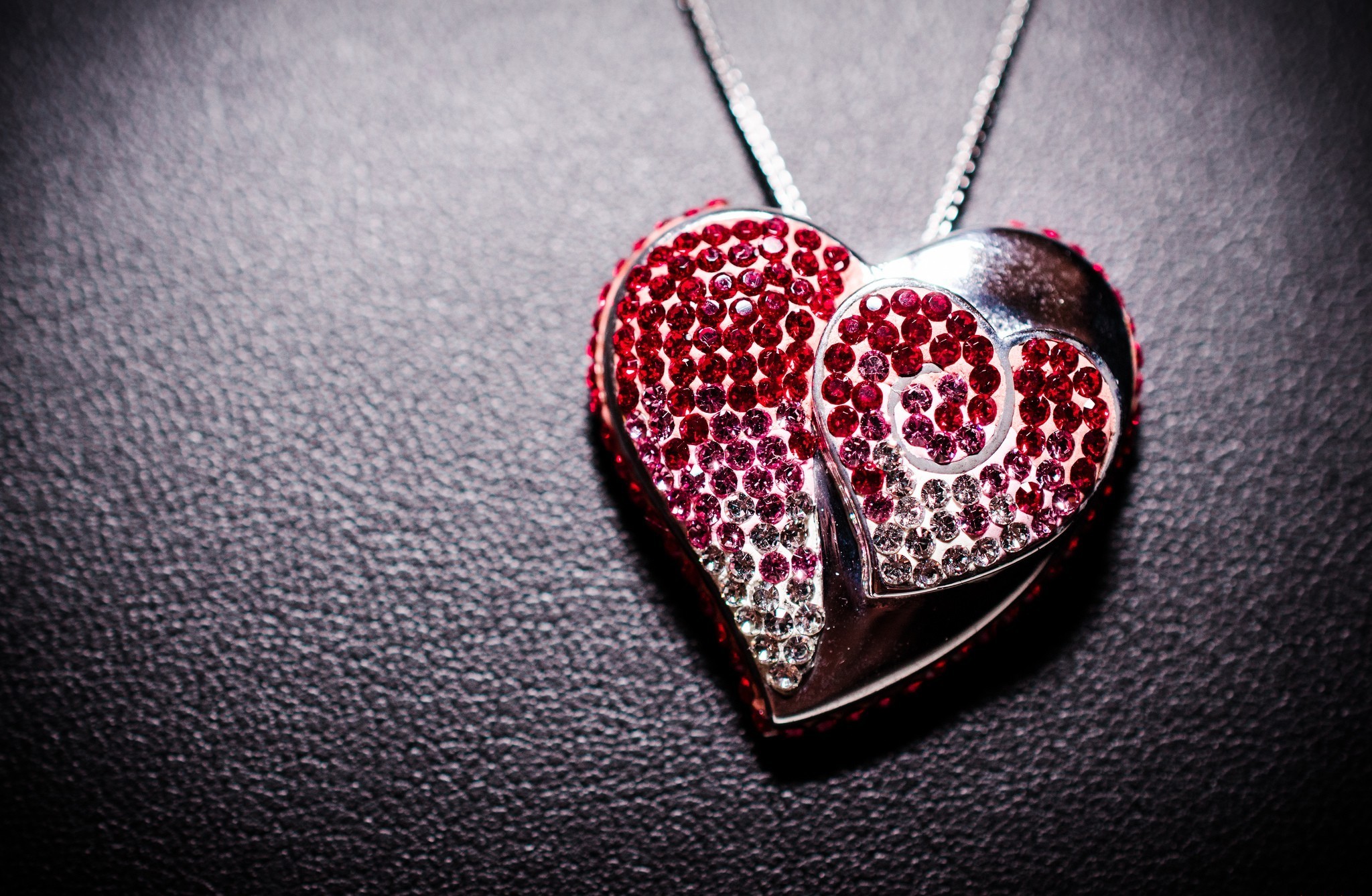 Обои ювелирные изделия, кулон, сердце, ожерелье, красный цвет, фото, заставка