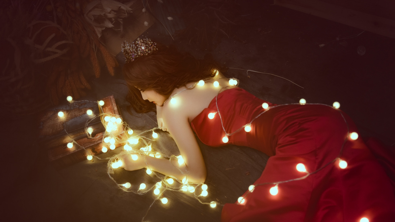 Обои 1366x768 гирлянда, красный цвет, свет, освещение, ночь, HD ready картинка