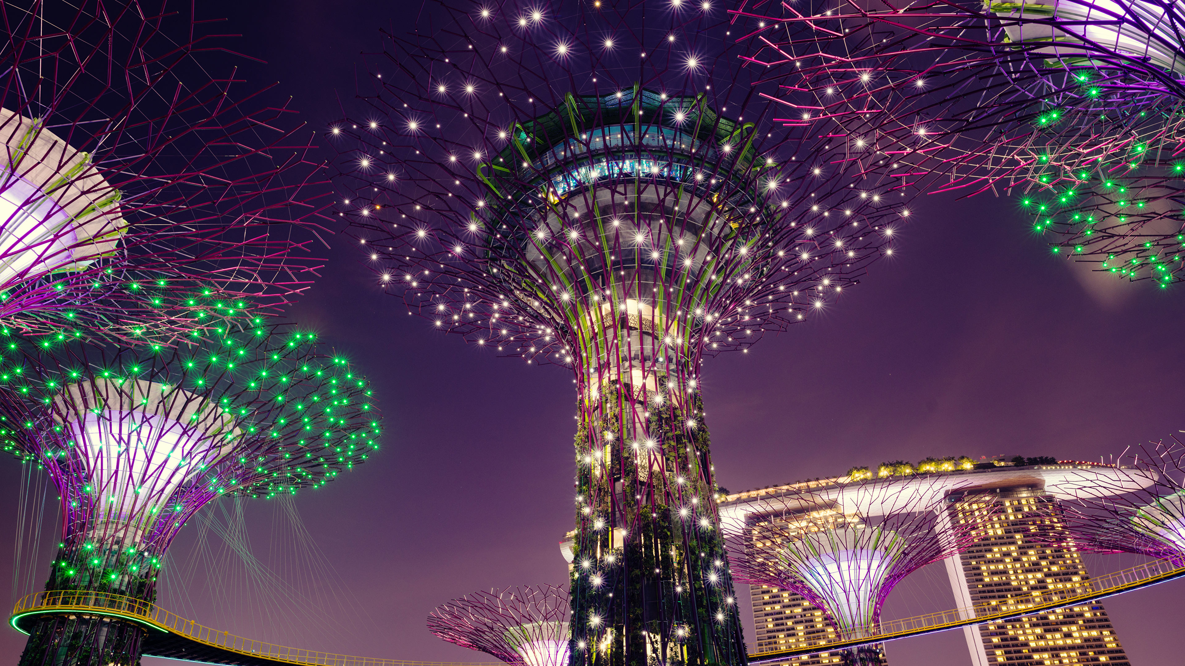 Обои Сады у залива, парк, достопримечательность, пурпур, освещение, фото, заставка