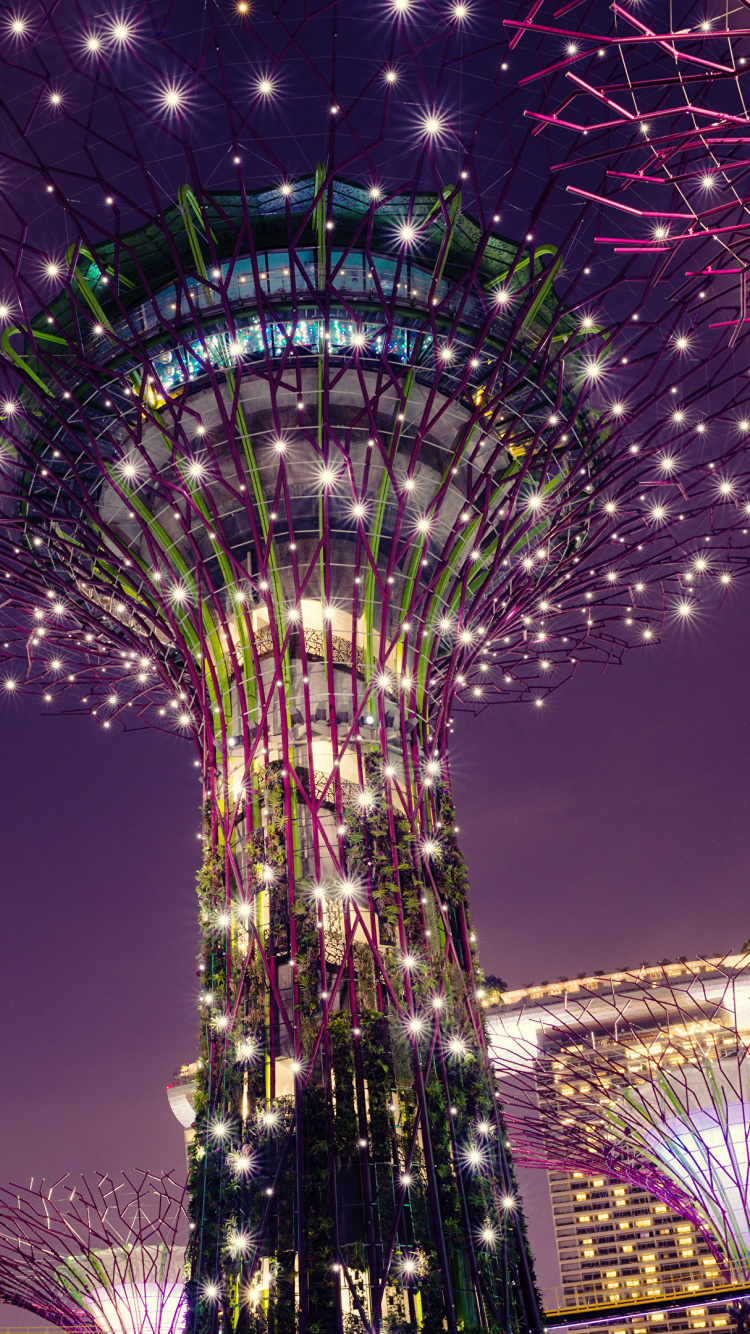 Обои Сады у залива, парк, достопримечательность, пурпур, освещение для iPhone 6, 6S, 7, 8, заставка, 750x1334 картинка
