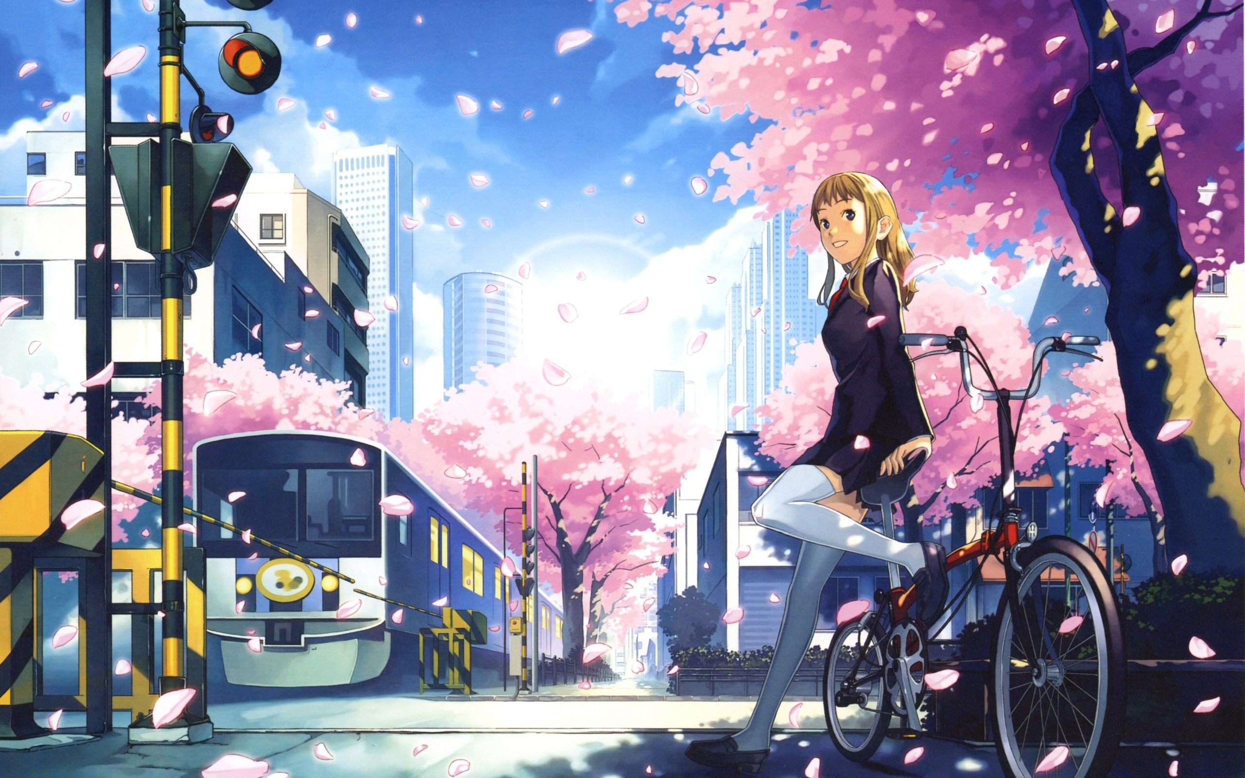Обои иллюстрация, велосипед, мангака, Сакура, обои компьютер, фото, заставка