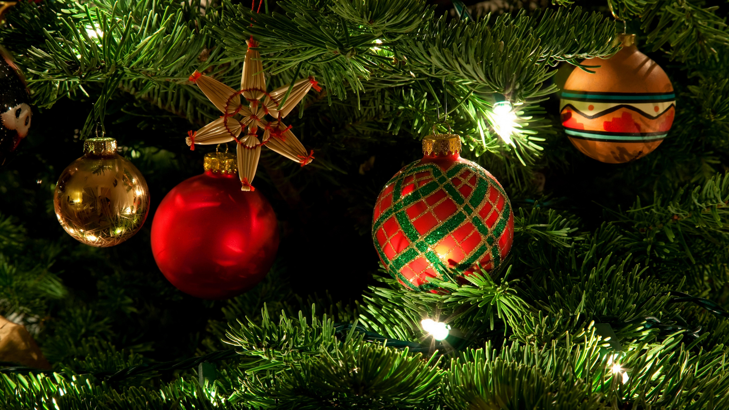 Обои 2560x1440 Рождественский день, рождественский орнамент, Рождество, Рождественские украшения, елка, WQHD, QHD, 16:9 картинка