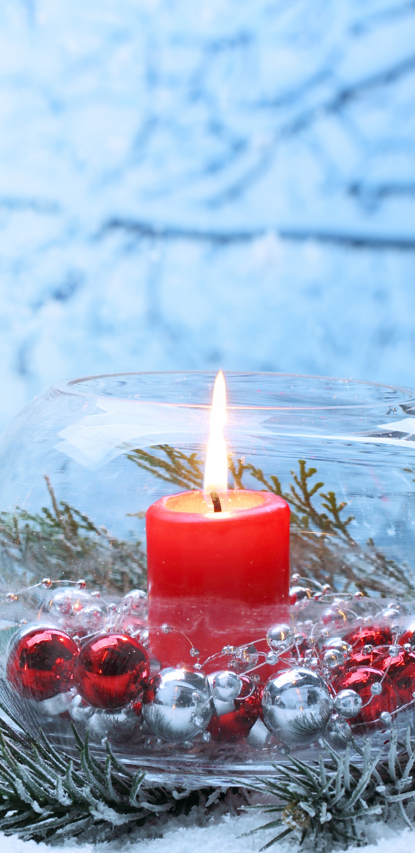 Обои Рождественский день, свеча, зима, ветвь, Рождество для Samsung Galaxy S8/S8+/S9/S9+/Note 8/Note 9 QHD, заставка, 1440x2960 картинка